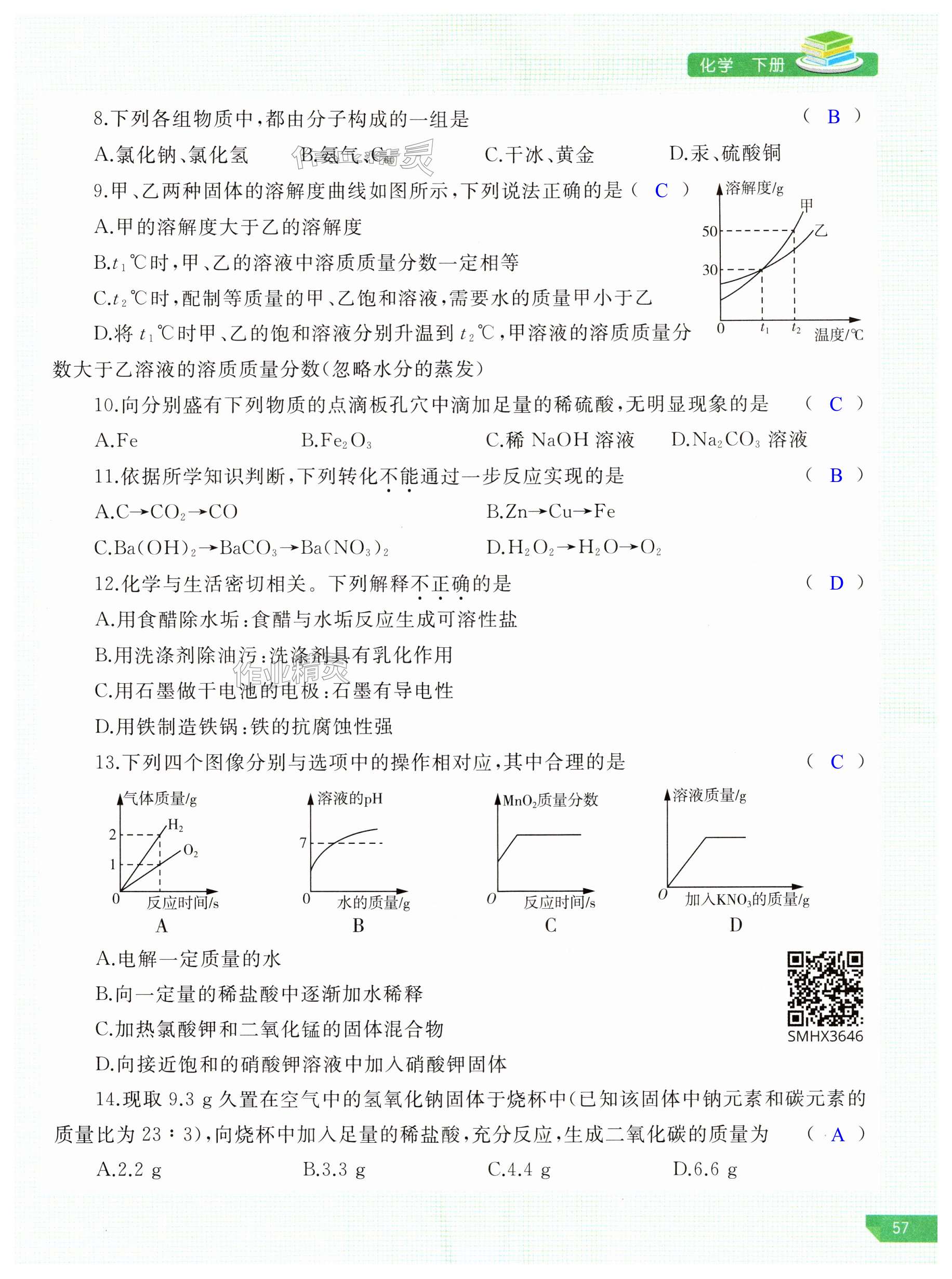 注:目前有些书本章节名称可能整理的还不是很完善,但都是按照顺序排列的,请同学们按照顺序仔细查找。练习册 2024年河南省初中学业水平考试解析与检测化学下册 答案主要是用来给同学们做完题方便对答案用的,请勿直接抄袭。