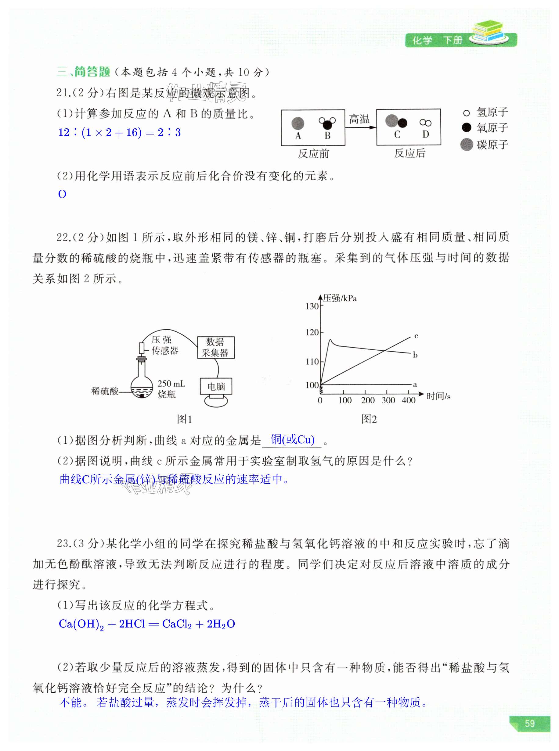 注:目前有些书本章节名称可能整理的还不是很完善,但都是按照顺序排列的,请同学们按照顺序仔细查找。练习册 2024年河南省初中学业水平考试解析与检测化学下册 答案主要是用来给同学们做完题方便对答案用的,请勿直接抄袭。