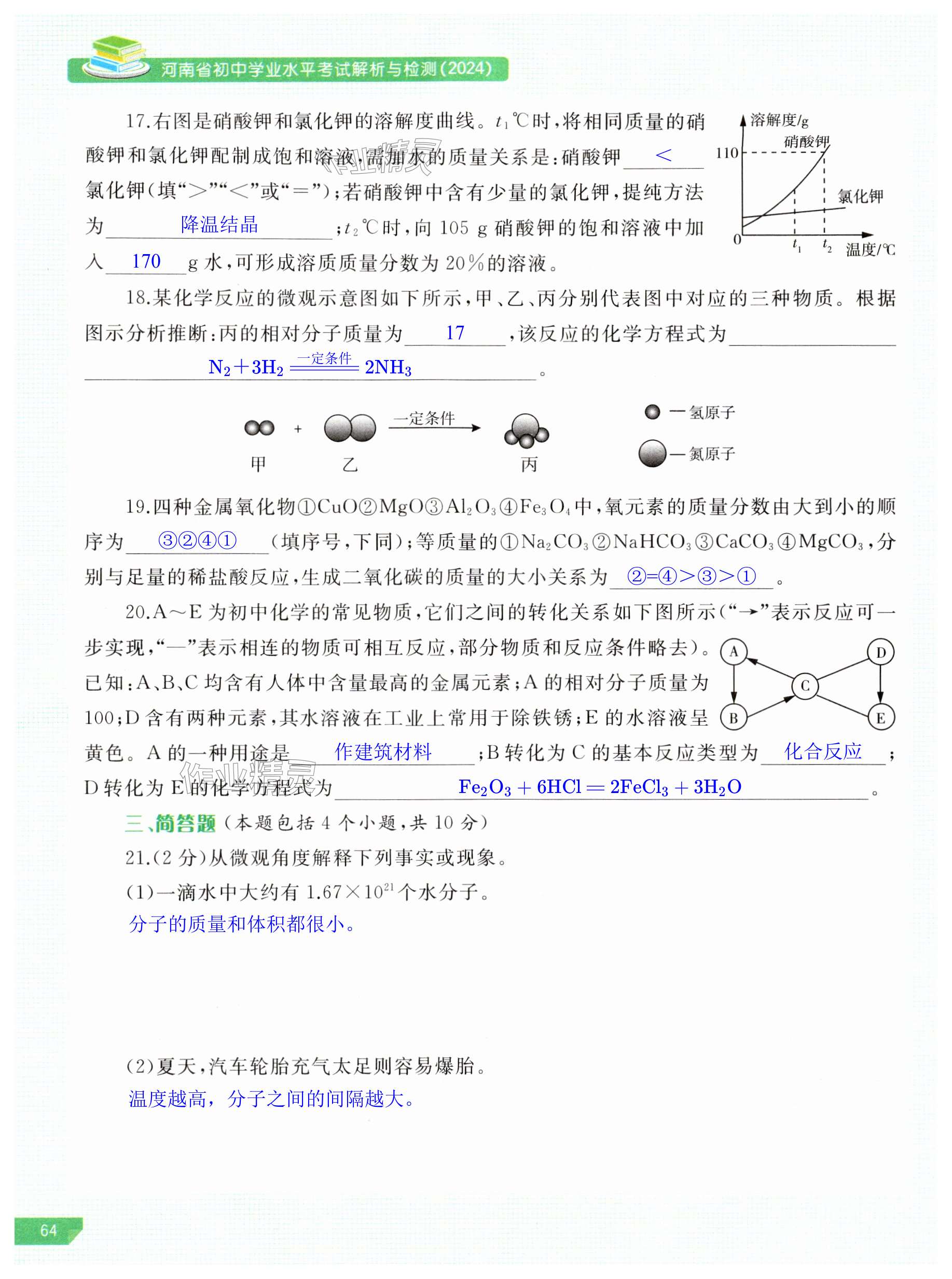 注:目前有些书本章节名称可能整理的还不是很完善,但都是按照顺序排列的,请同学们按照顺序仔细查找。练习册 2024年河南省初中学业水平考试解析与检测化学下册 答案主要是用来给同学们做完题方便对答案用的,请勿直接抄袭。