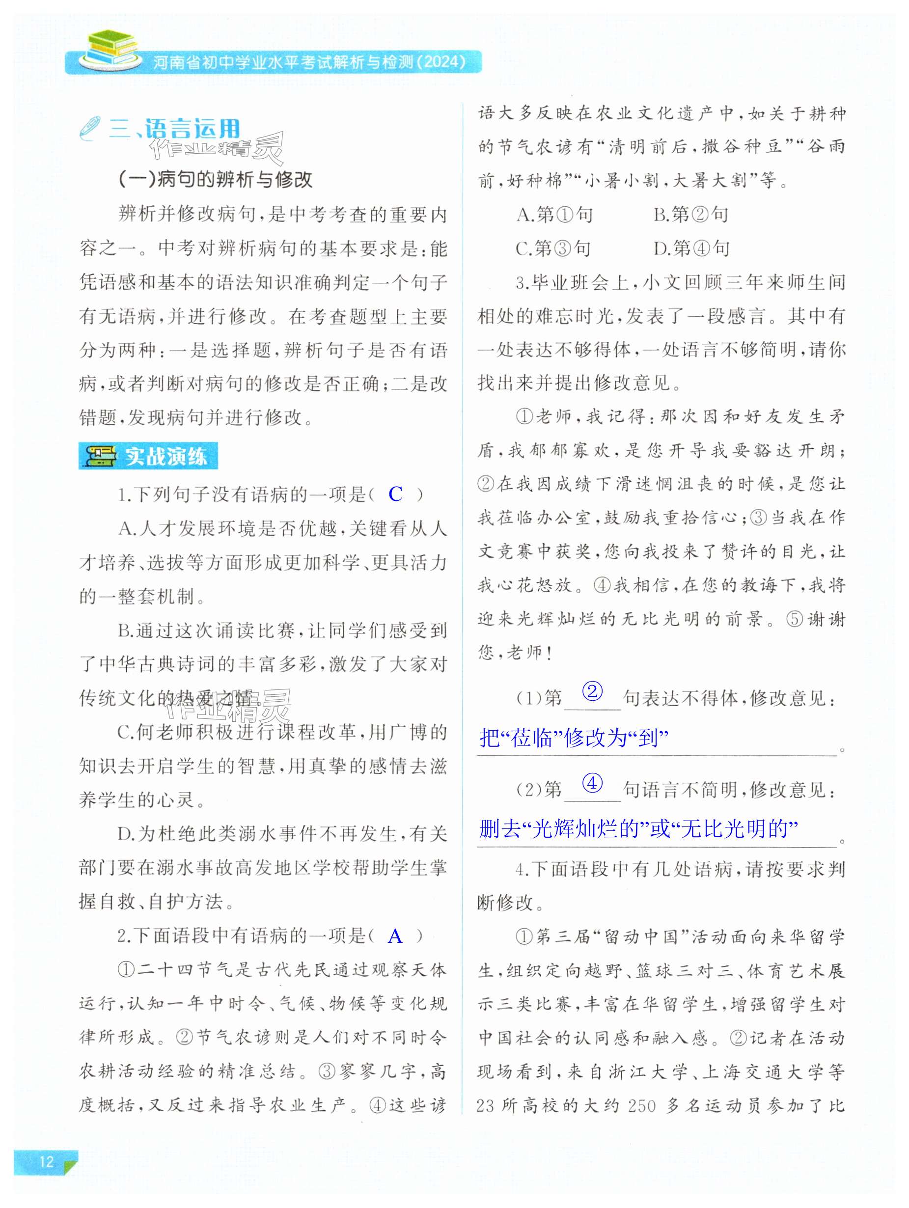 注:目前有些书本章节名称可能整理的还不是很完善,但都是按照顺序排列的,请同学们按照顺序仔细查找。练习册 2024年河南省初中学业水平考试解析与检测语文下册 答案主要是用来给同学们做完题方便对答案用的,请勿直接抄袭。