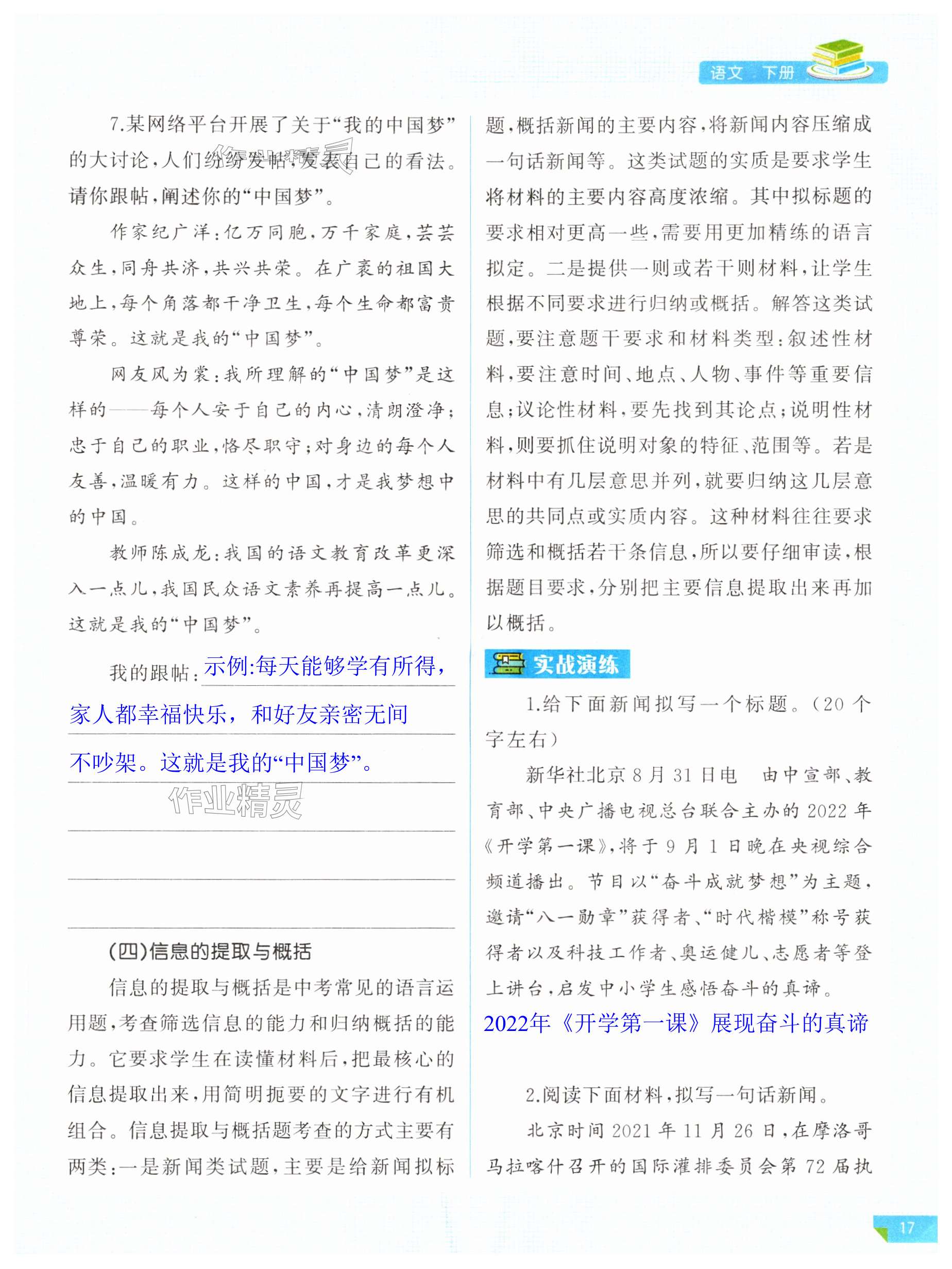 注:目前有些书本章节名称可能整理的还不是很完善,但都是按照顺序排列的,请同学们按照顺序仔细查找。练习册 2024年河南省初中学业水平考试解析与检测语文下册 答案主要是用来给同学们做完题方便对答案用的,请勿直接抄袭。