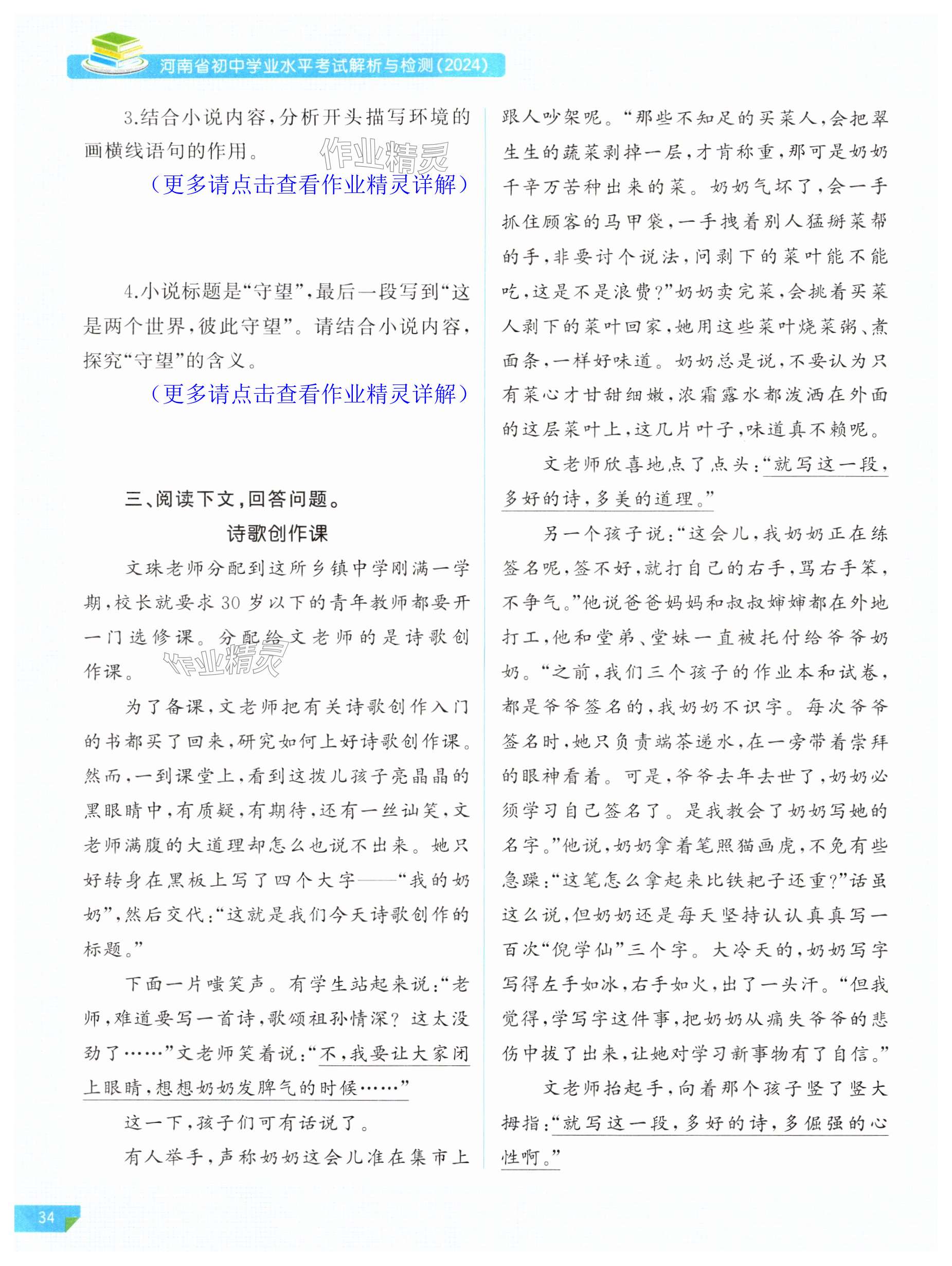 注:目前有些书本章节名称可能整理的还不是很完善,但都是按照顺序排列的,请同学们按照顺序仔细查找。练习册 2024年河南省初中学业水平考试解析与检测语文下册 答案主要是用来给同学们做完题方便对答案用的,请勿直接抄袭。
