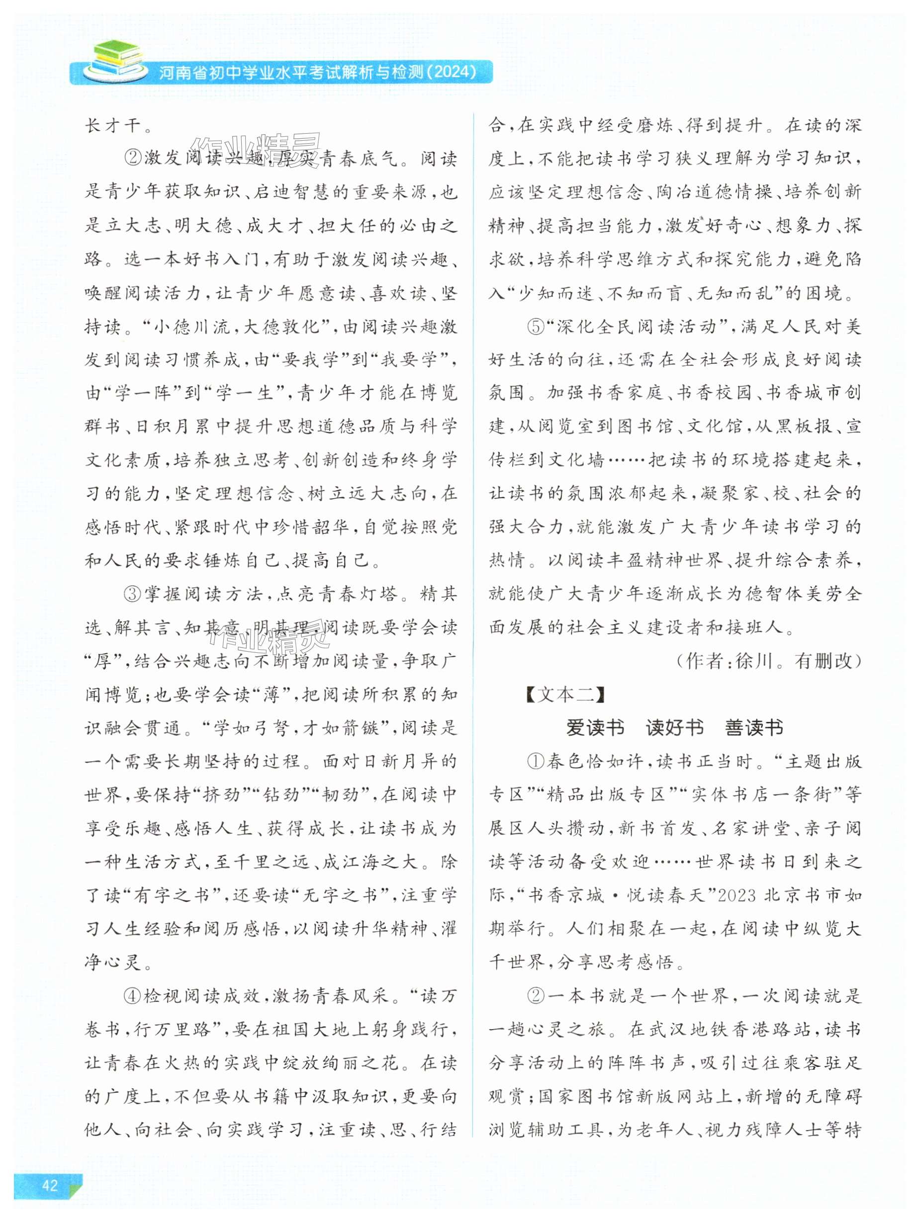 注:目前有些书本章节名称可能整理的还不是很完善,但都是按照顺序排列的,请同学们按照顺序仔细查找。练习册 2024年河南省初中学业水平考试解析与检测语文下册 答案主要是用来给同学们做完题方便对答案用的,请勿直接抄袭。