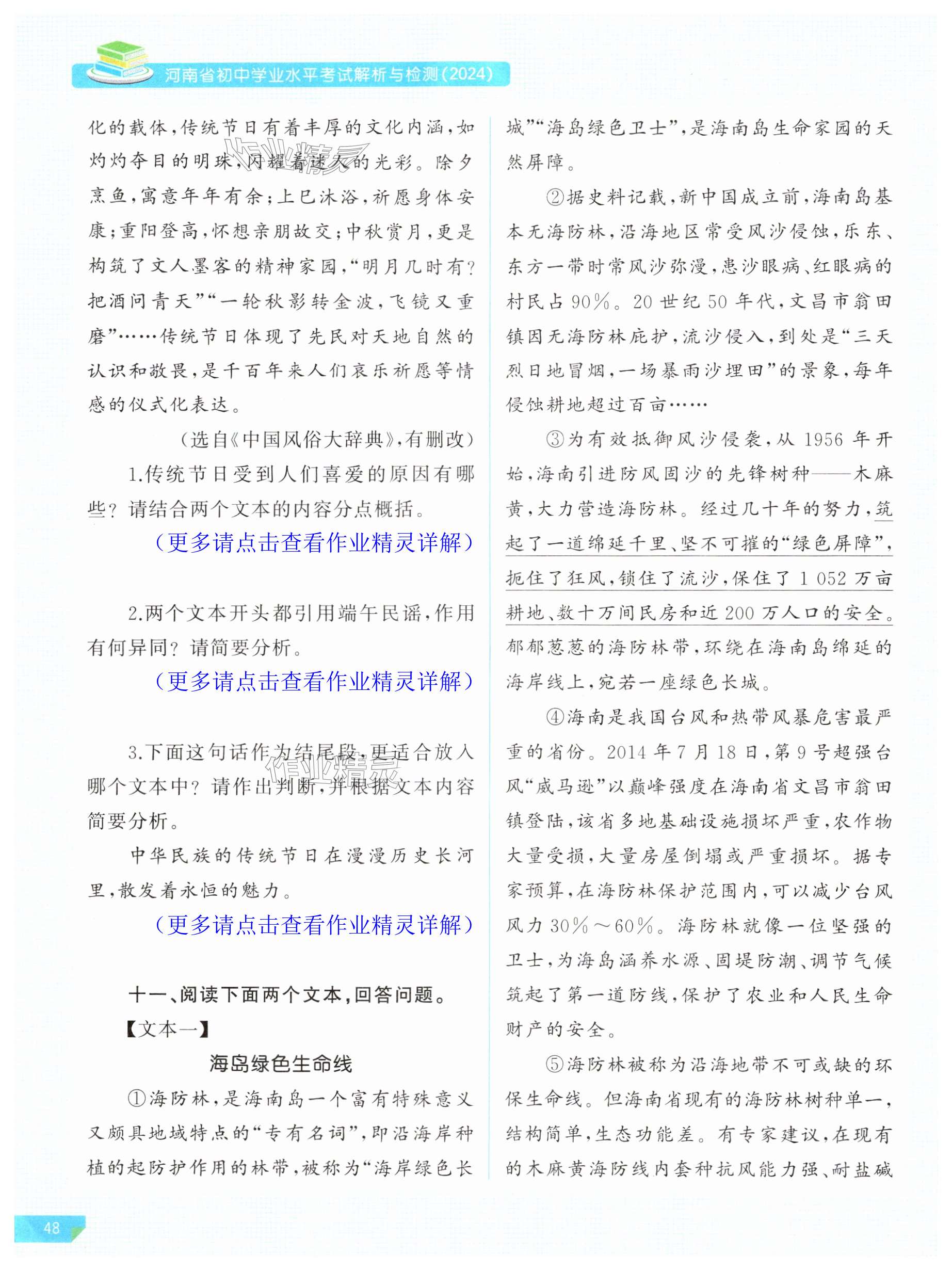 注:目前有些书本章节名称可能整理的还不是很完善,但都是按照顺序排列的,请同学们按照顺序仔细查找。练习册 2024年河南省初中学业水平考试解析与检测语文下册 答案主要是用来给同学们做完题方便对答案用的,请勿直接抄袭。