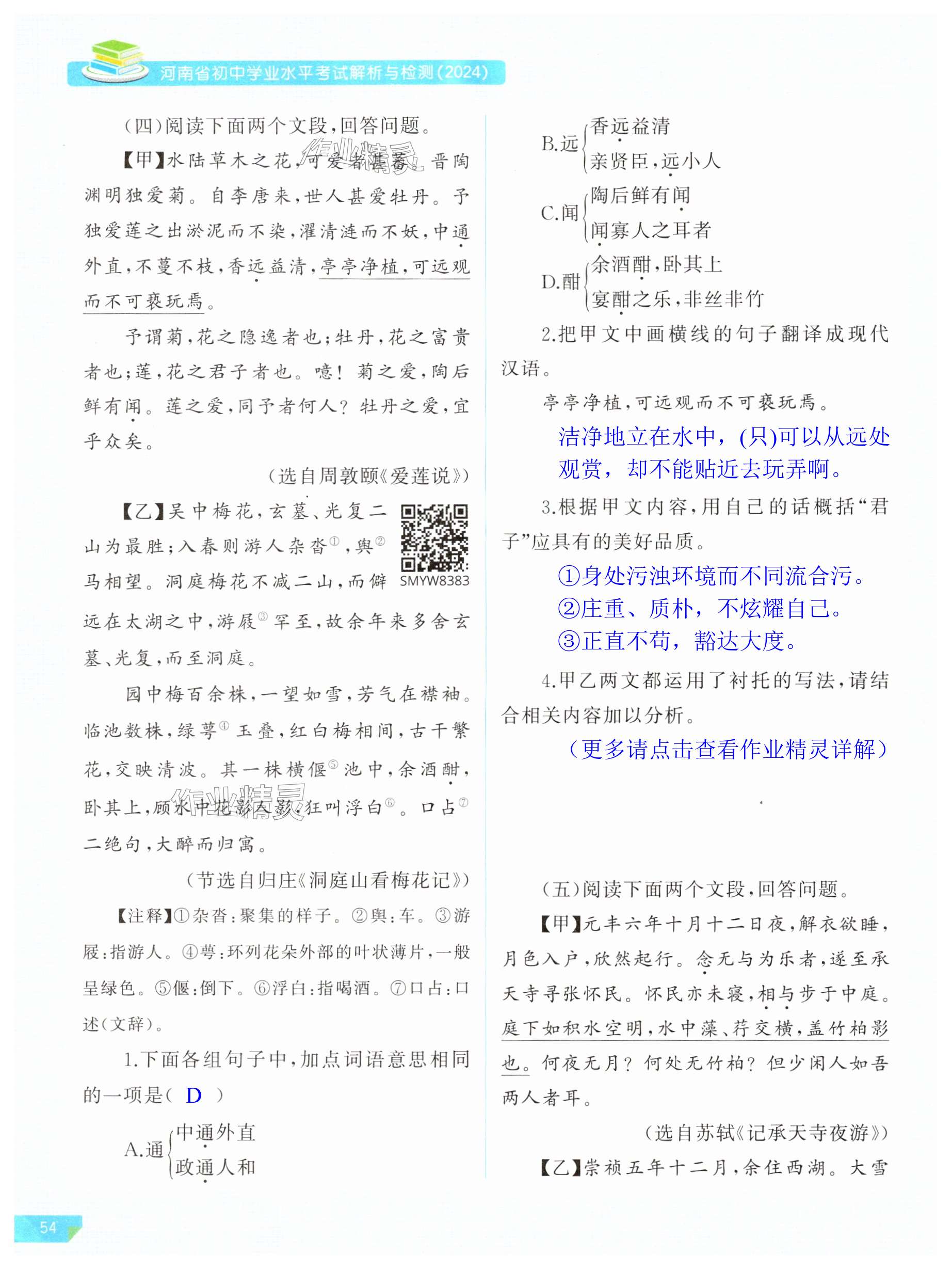 注:目前有些书本章节名称可能整理的还不是很完善,但都是按照顺序排列的,请同学们按照顺序仔细查找。练习册 2024年河南省初中学业水平考试解析与检测语文下册 答案主要是用来给同学们做完题方便对答案用的,请勿直接抄袭。
