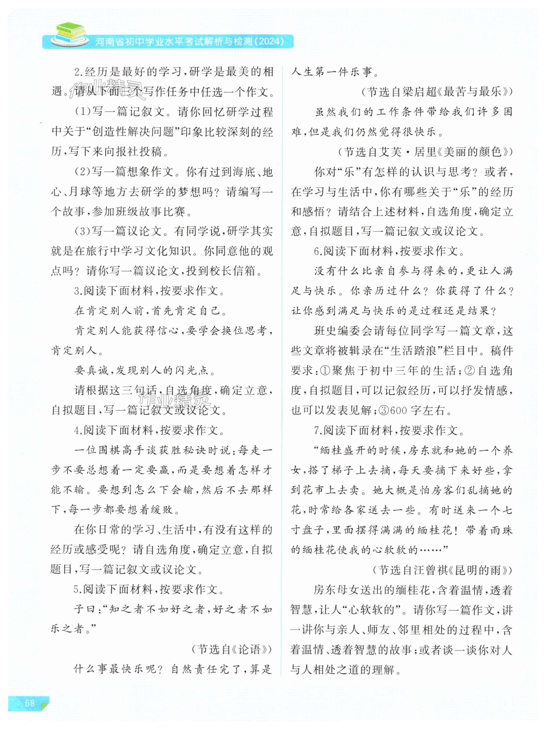注:目前有些书本章节名称可能整理的还不是很完善,但都是按照顺序排列的,请同学们按照顺序仔细查找。练习册 2024年河南省初中学业水平考试解析与检测语文下册 答案主要是用来给同学们做完题方便对答案用的,请勿直接抄袭。