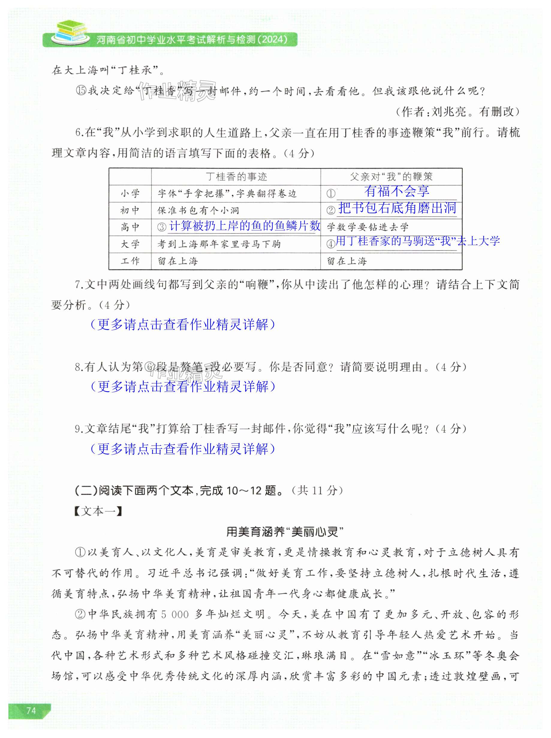 注:目前有些书本章节名称可能整理的还不是很完善,但都是按照顺序排列的,请同学们按照顺序仔细查找。练习册 2024年河南省初中学业水平考试解析与检测语文下册 答案主要是用来给同学们做完题方便对答案用的,请勿直接抄袭。