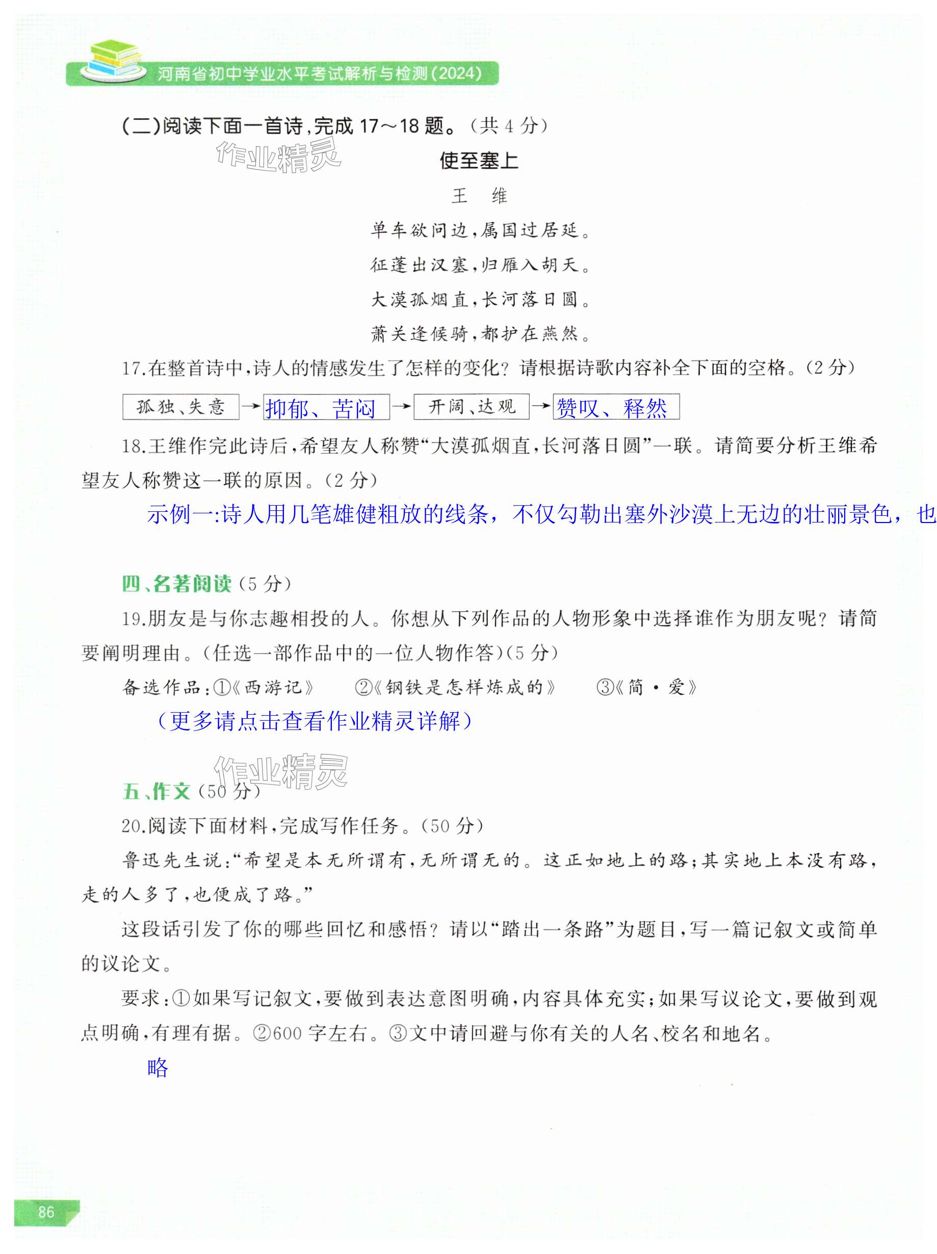 注:目前有些书本章节名称可能整理的还不是很完善,但都是按照顺序排列的,请同学们按照顺序仔细查找。练习册 2024年河南省初中学业水平考试解析与检测语文下册 答案主要是用来给同学们做完题方便对答案用的,请勿直接抄袭。