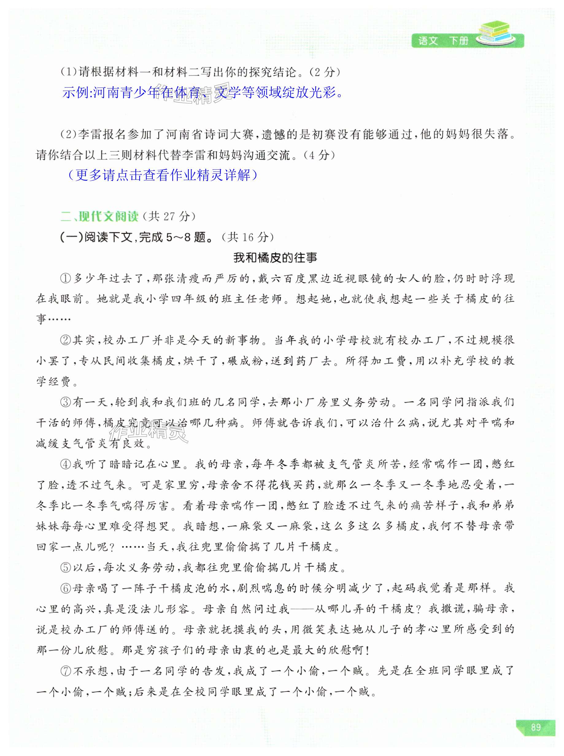 注:目前有些书本章节名称可能整理的还不是很完善,但都是按照顺序排列的,请同学们按照顺序仔细查找。练习册 2024年河南省初中学业水平考试解析与检测语文下册 答案主要是用来给同学们做完题方便对答案用的,请勿直接抄袭。