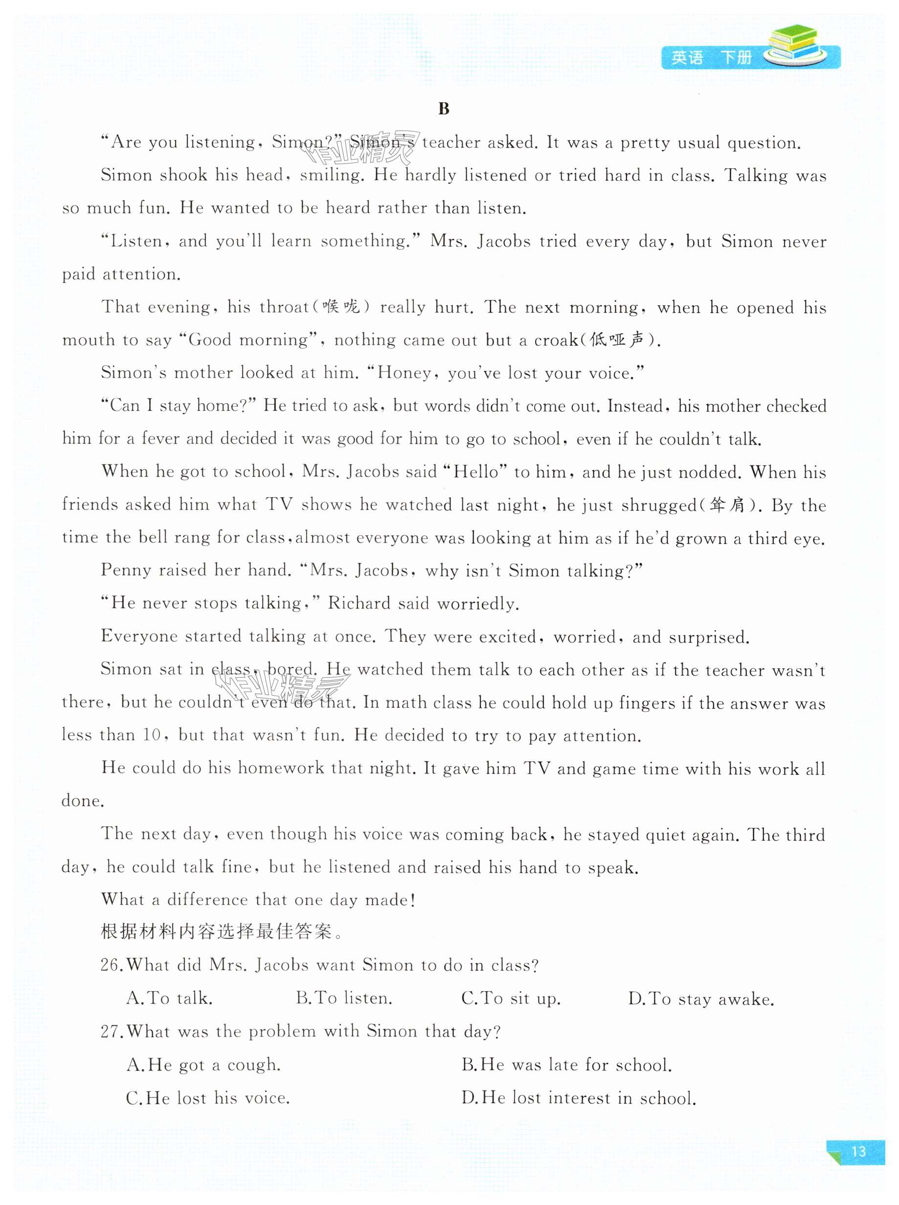 注:目前有些书本章节名称可能整理的还不是很完善,但都是按照顺序排列的,请同学们按照顺序仔细查找。练习册 2024年河南省初中学业水平考试解析与检测英语下册 答案主要是用来给同学们做完题方便对答案用的,请勿直接抄袭。