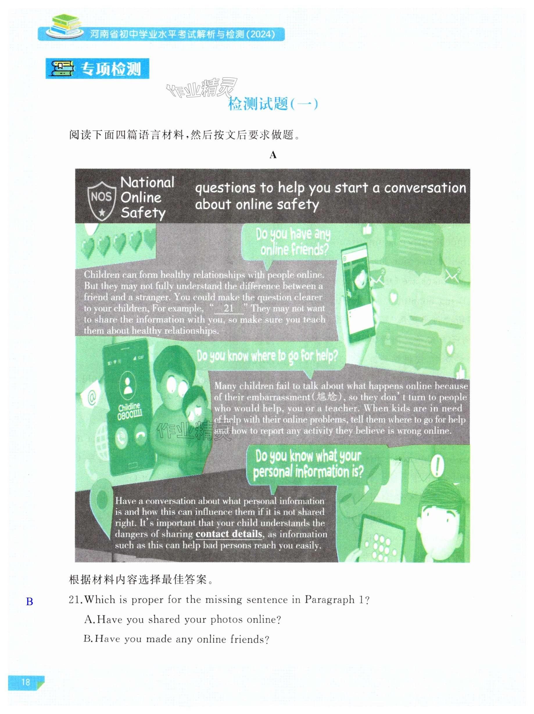 注:目前有些书本章节名称可能整理的还不是很完善,但都是按照顺序排列的,请同学们按照顺序仔细查找。练习册 2024年河南省初中学业水平考试解析与检测英语下册 答案主要是用来给同学们做完题方便对答案用的,请勿直接抄袭。