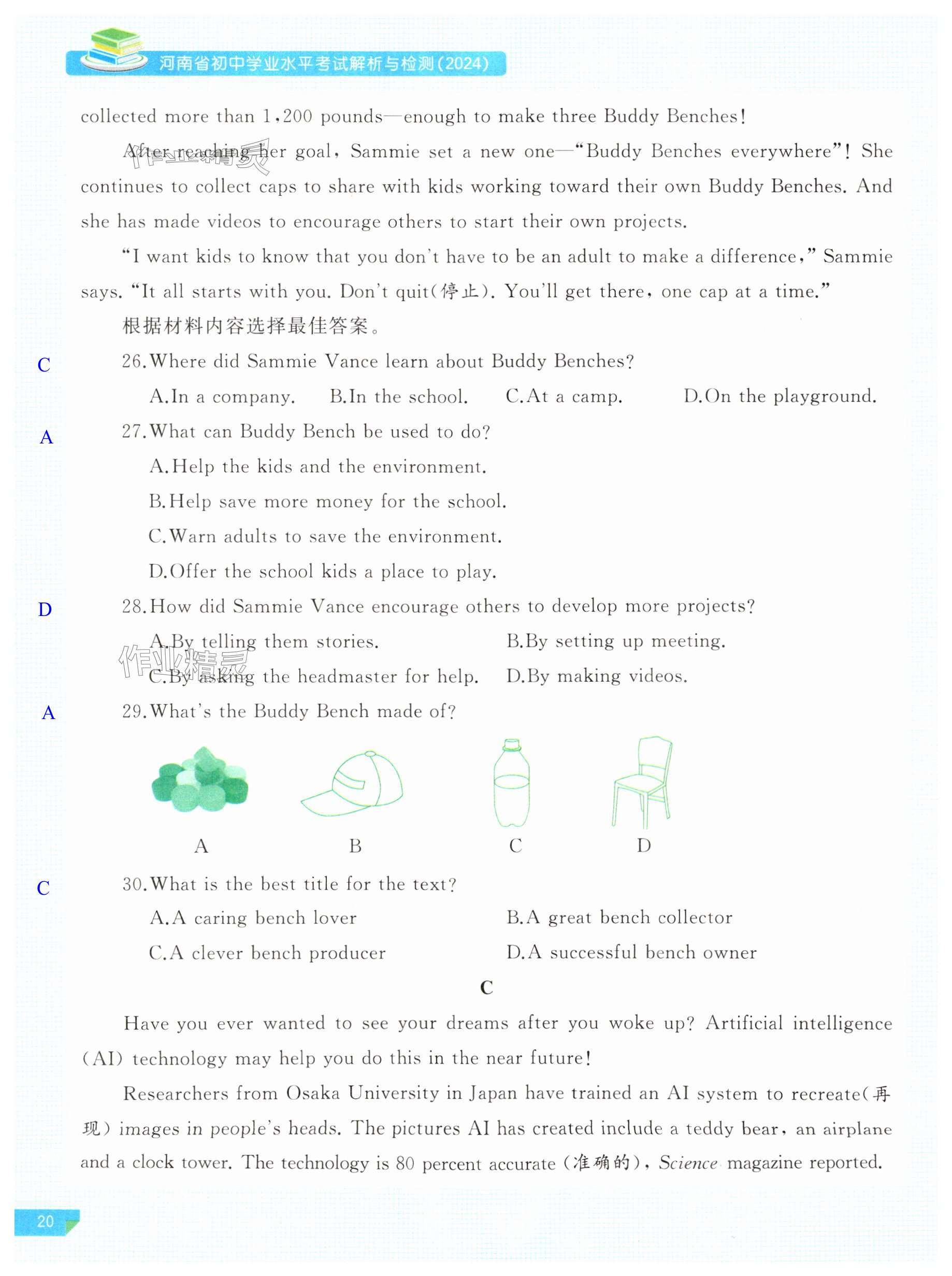 注:目前有些书本章节名称可能整理的还不是很完善,但都是按照顺序排列的,请同学们按照顺序仔细查找。练习册 2024年河南省初中学业水平考试解析与检测英语下册 答案主要是用来给同学们做完题方便对答案用的,请勿直接抄袭。