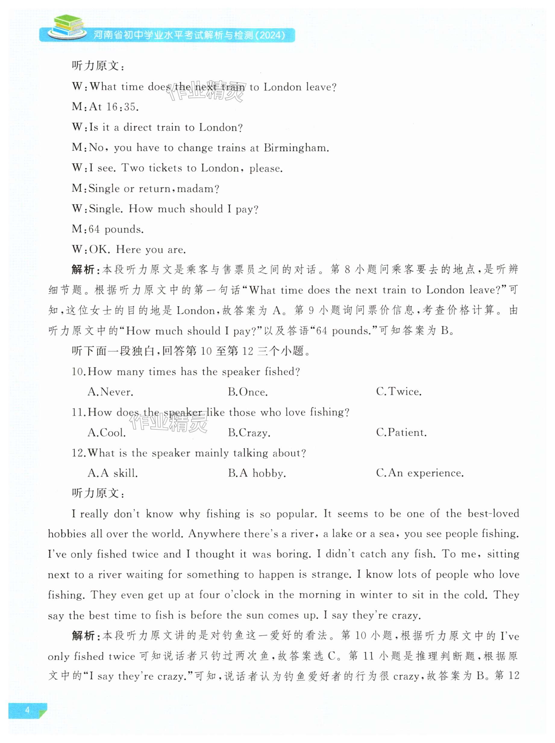 2024年河南省初中学业水平考试解析与检测英语下册