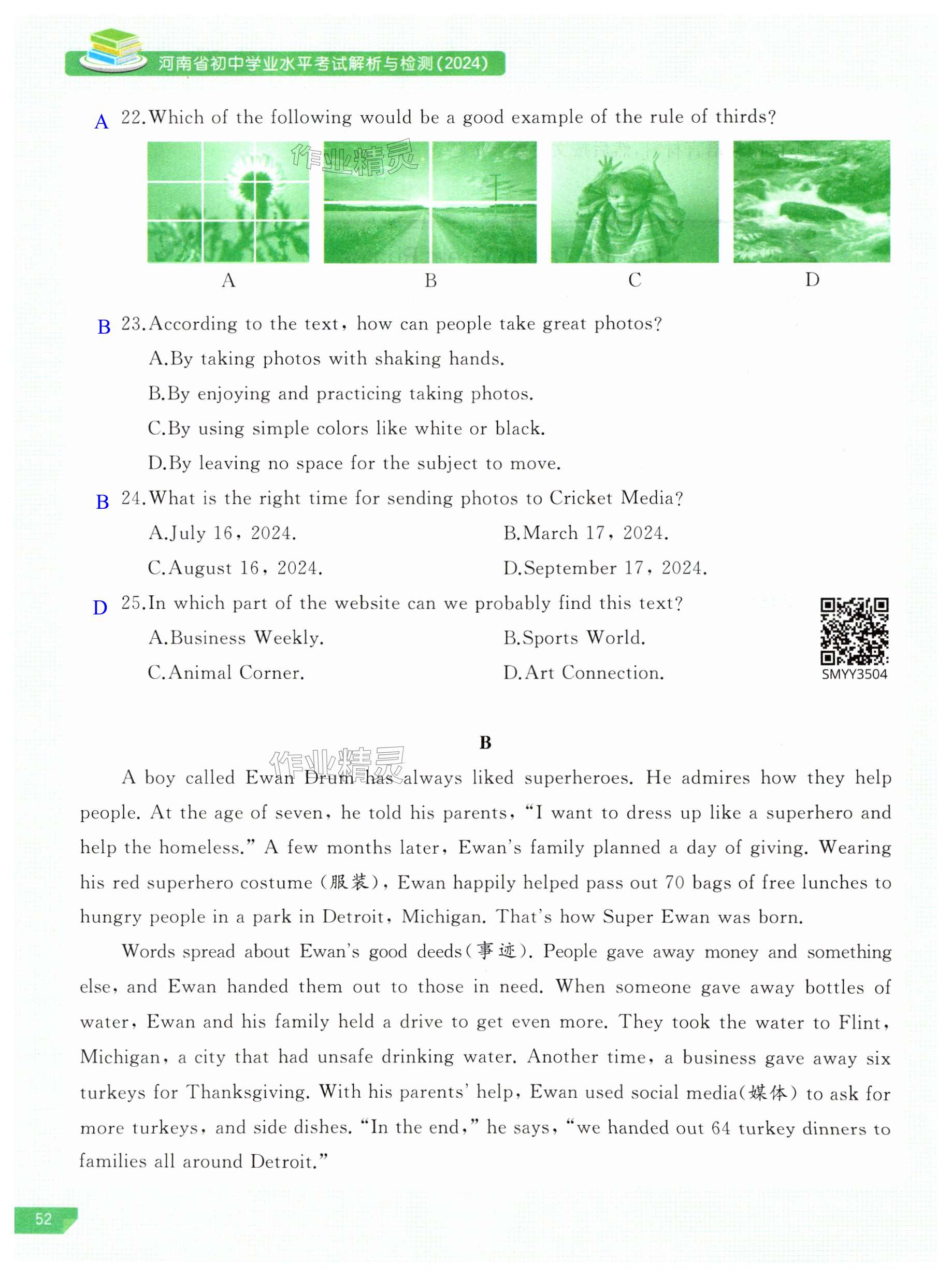 注:目前有些书本章节名称可能整理的还不是很完善,但都是按照顺序排列的,请同学们按照顺序仔细查找。练习册 2024年河南省初中学业水平考试解析与检测英语下册 答案主要是用来给同学们做完题方便对答案用的,请勿直接抄袭。