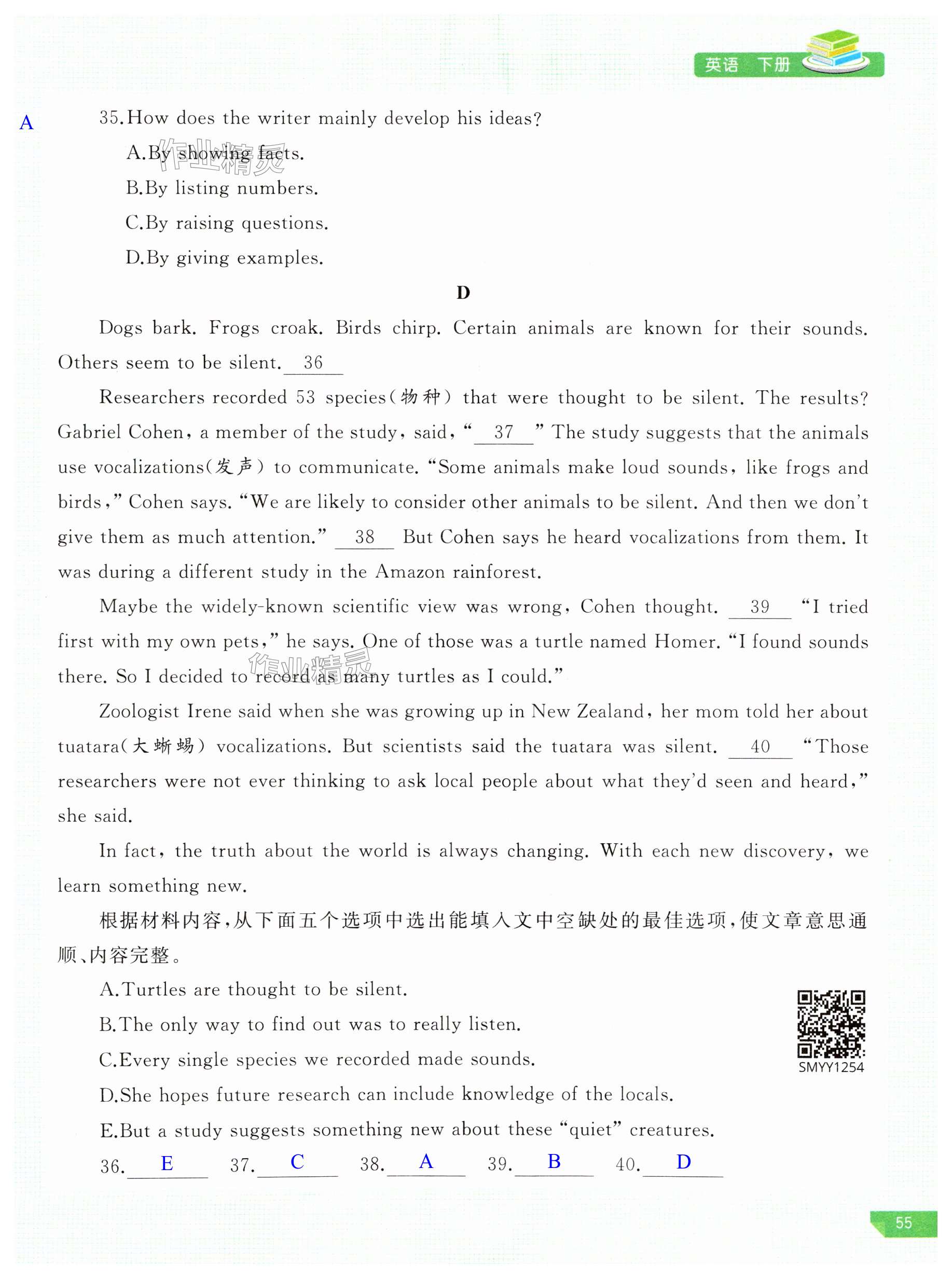 注:目前有些书本章节名称可能整理的还不是很完善,但都是按照顺序排列的,请同学们按照顺序仔细查找。练习册 2024年河南省初中学业水平考试解析与检测英语下册 答案主要是用来给同学们做完题方便对答案用的,请勿直接抄袭。