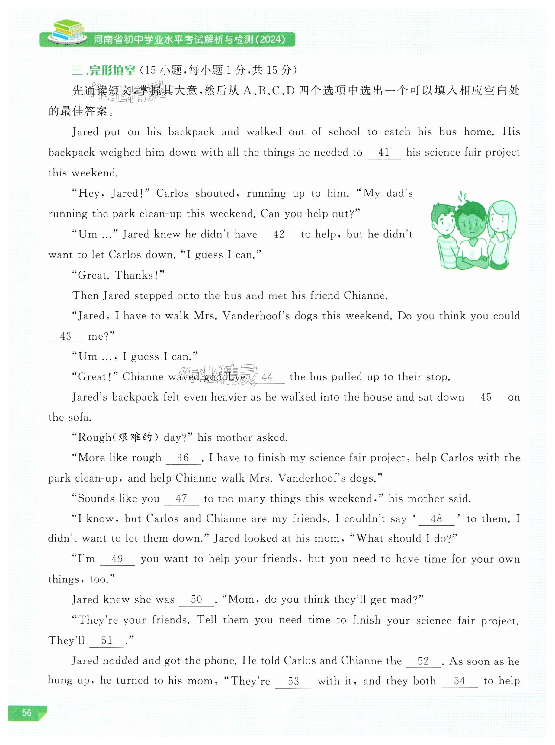 注:目前有些书本章节名称可能整理的还不是很完善,但都是按照顺序排列的,请同学们按照顺序仔细查找。练习册 2024年河南省初中学业水平考试解析与检测英语下册 答案主要是用来给同学们做完题方便对答案用的,请勿直接抄袭。