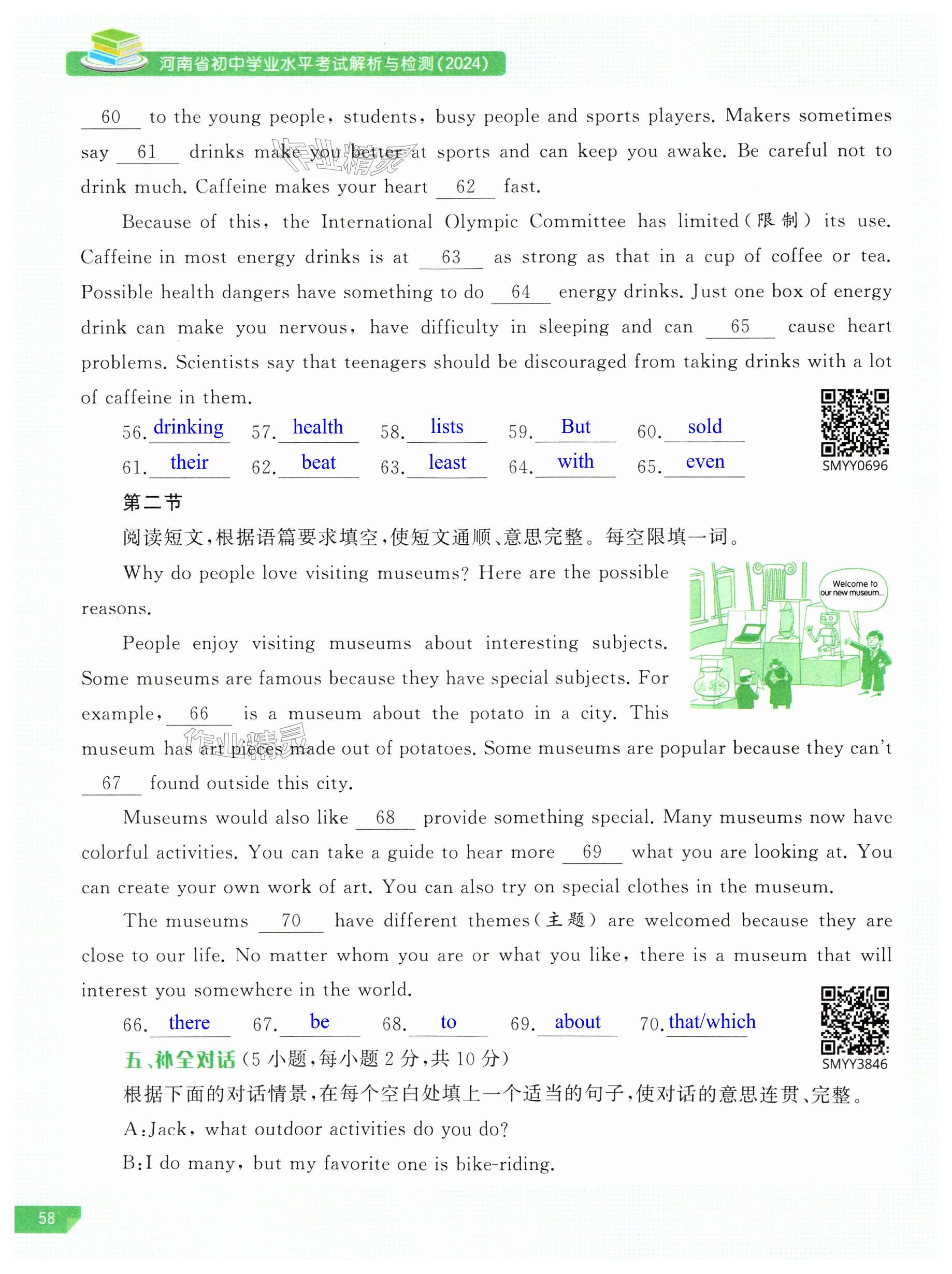 注:目前有些书本章节名称可能整理的还不是很完善,但都是按照顺序排列的,请同学们按照顺序仔细查找。练习册 2024年河南省初中学业水平考试解析与检测英语下册 答案主要是用来给同学们做完题方便对答案用的,请勿直接抄袭。