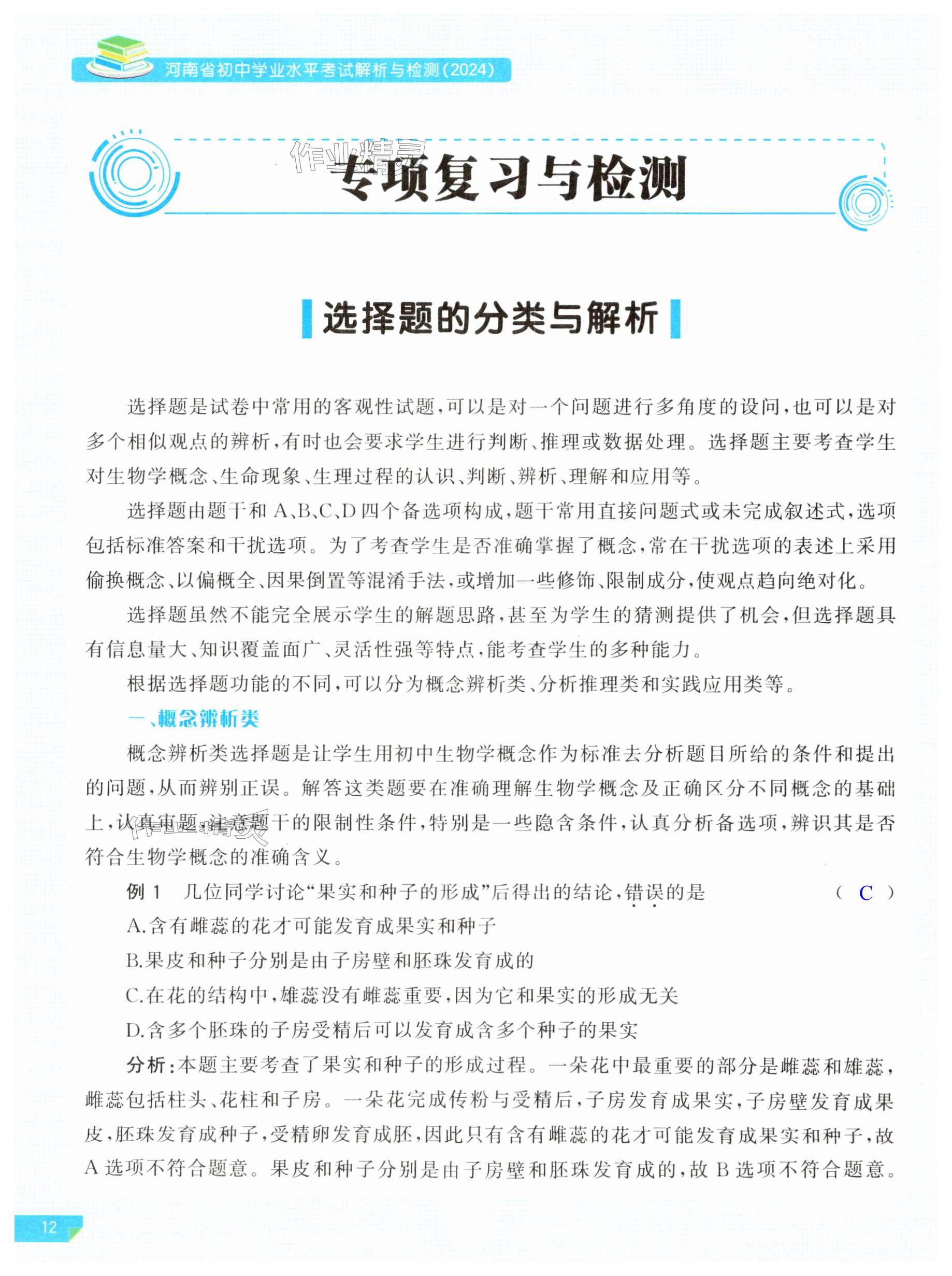注:目前有些书本章节名称可能整理的还不是很完善,但都是按照顺序排列的,请同学们按照顺序仔细查找。练习册 2024年河南省初中学业水平考试解析与检测生物下册 答案主要是用来给同学们做完题方便对答案用的,请勿直接抄袭。