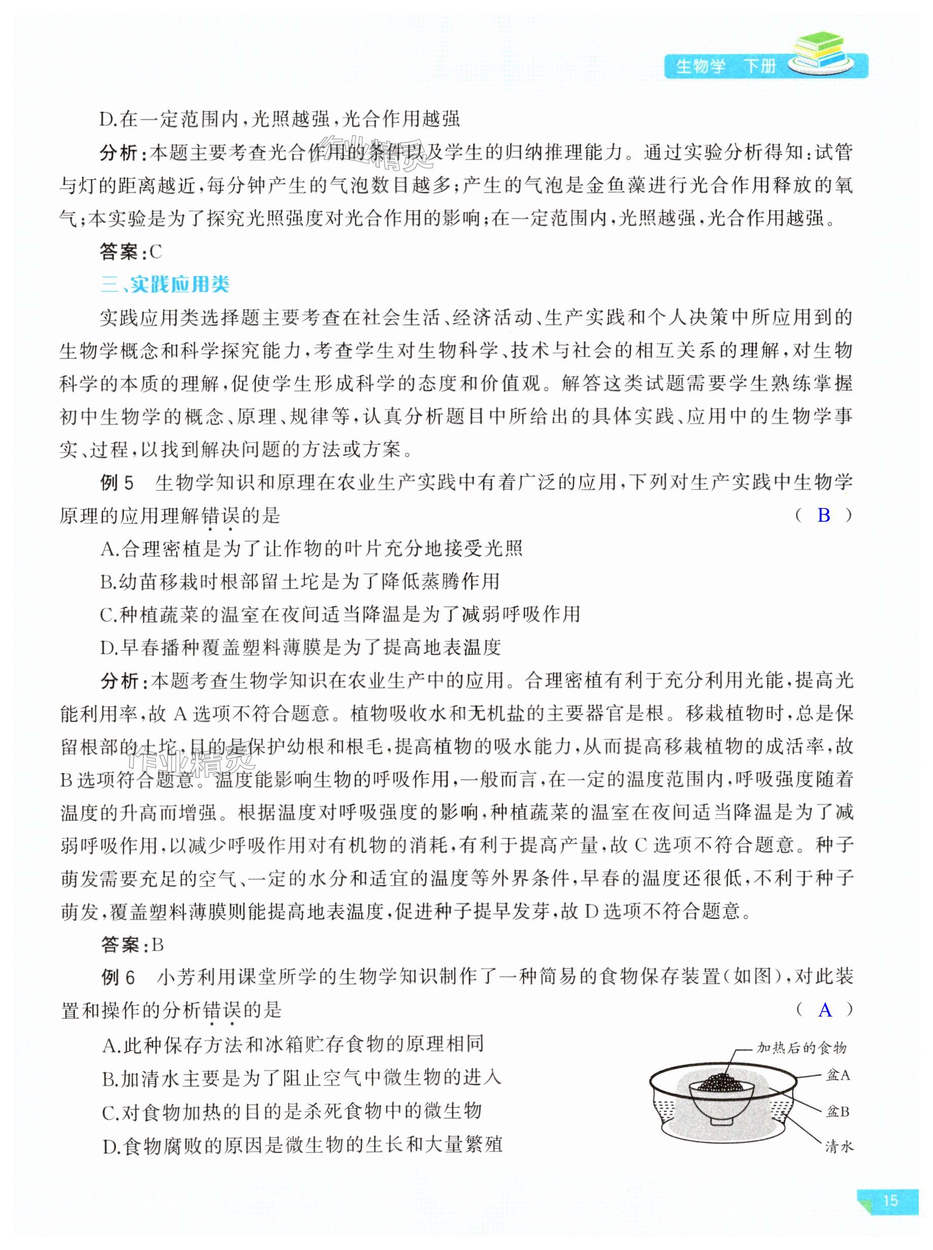 注:目前有些书本章节名称可能整理的还不是很完善,但都是按照顺序排列的,请同学们按照顺序仔细查找。练习册 2024年河南省初中学业水平考试解析与检测生物下册 答案主要是用来给同学们做完题方便对答案用的,请勿直接抄袭。