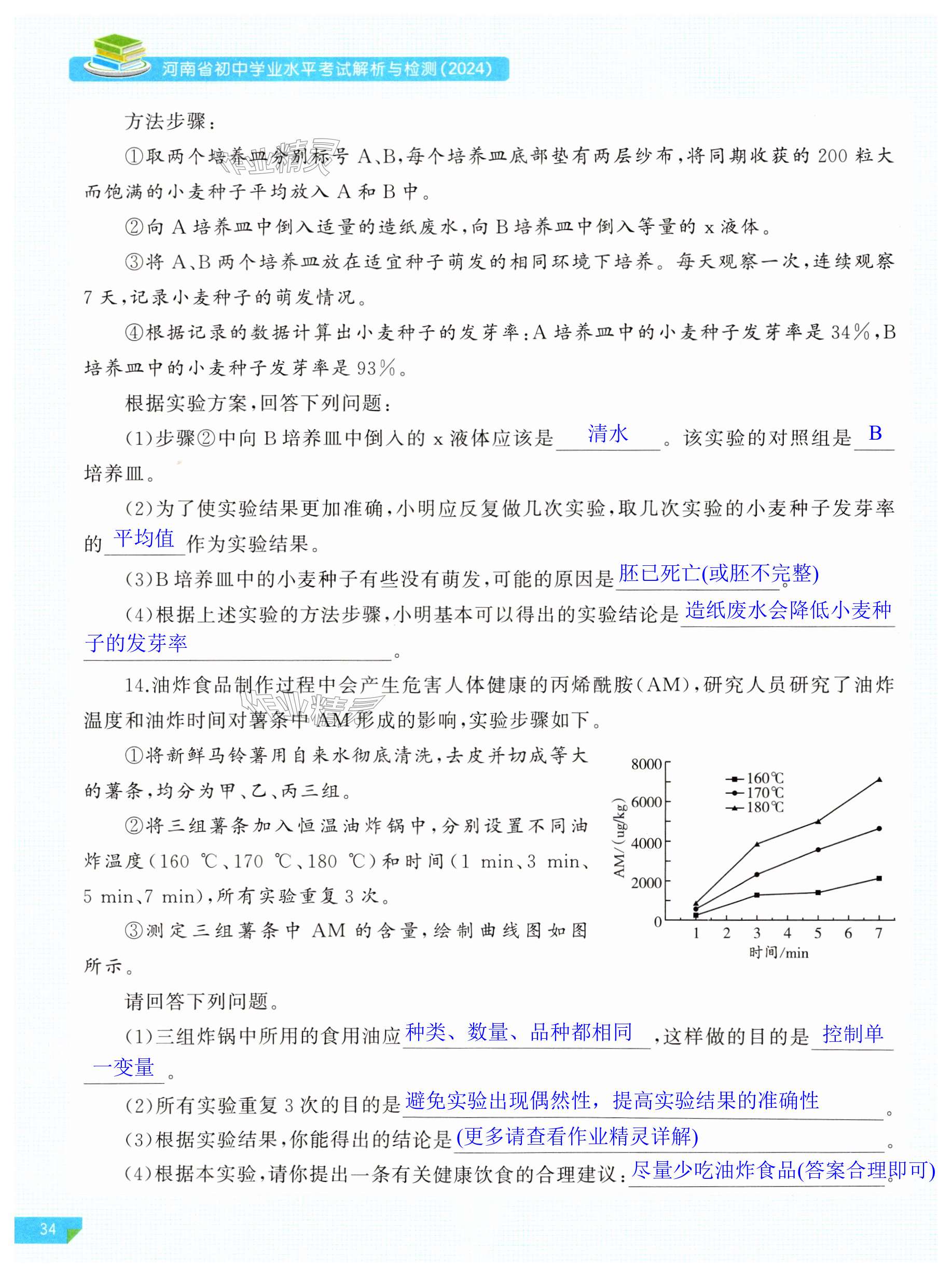 注:目前有些书本章节名称可能整理的还不是很完善,但都是按照顺序排列的,请同学们按照顺序仔细查找。练习册 2024年河南省初中学业水平考试解析与检测生物下册 答案主要是用来给同学们做完题方便对答案用的,请勿直接抄袭。