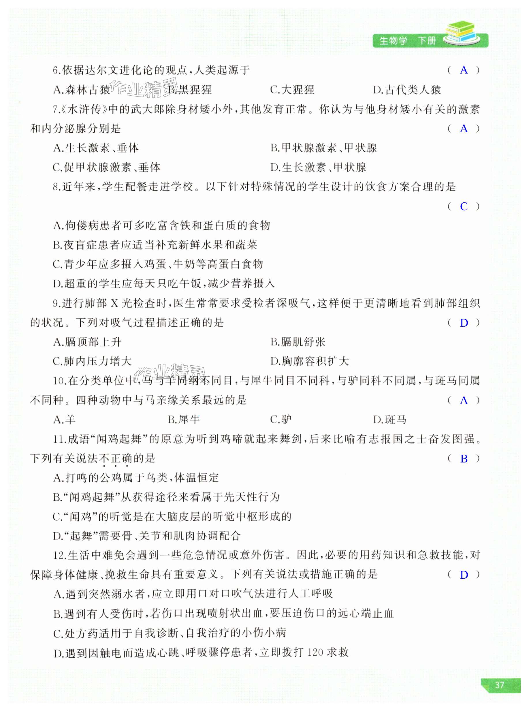 注:目前有些书本章节名称可能整理的还不是很完善,但都是按照顺序排列的,请同学们按照顺序仔细查找。练习册 2024年河南省初中学业水平考试解析与检测生物下册 答案主要是用来给同学们做完题方便对答案用的,请勿直接抄袭。