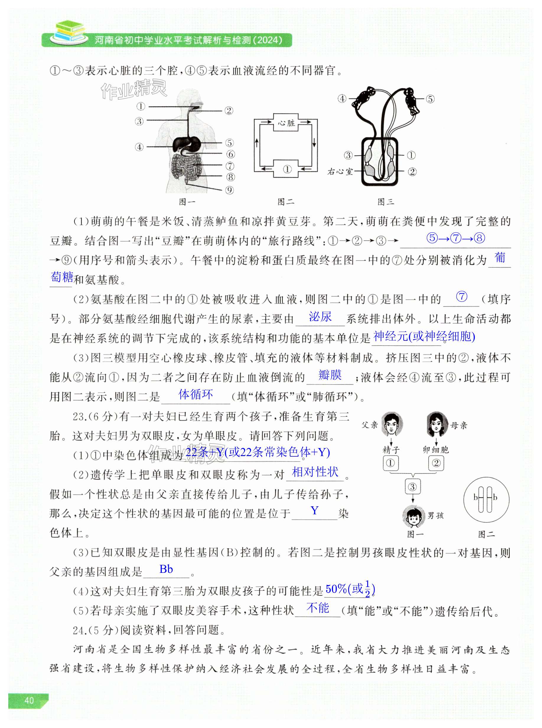 注:目前有些书本章节名称可能整理的还不是很完善,但都是按照顺序排列的,请同学们按照顺序仔细查找。练习册 2024年河南省初中学业水平考试解析与检测生物下册 答案主要是用来给同学们做完题方便对答案用的,请勿直接抄袭。