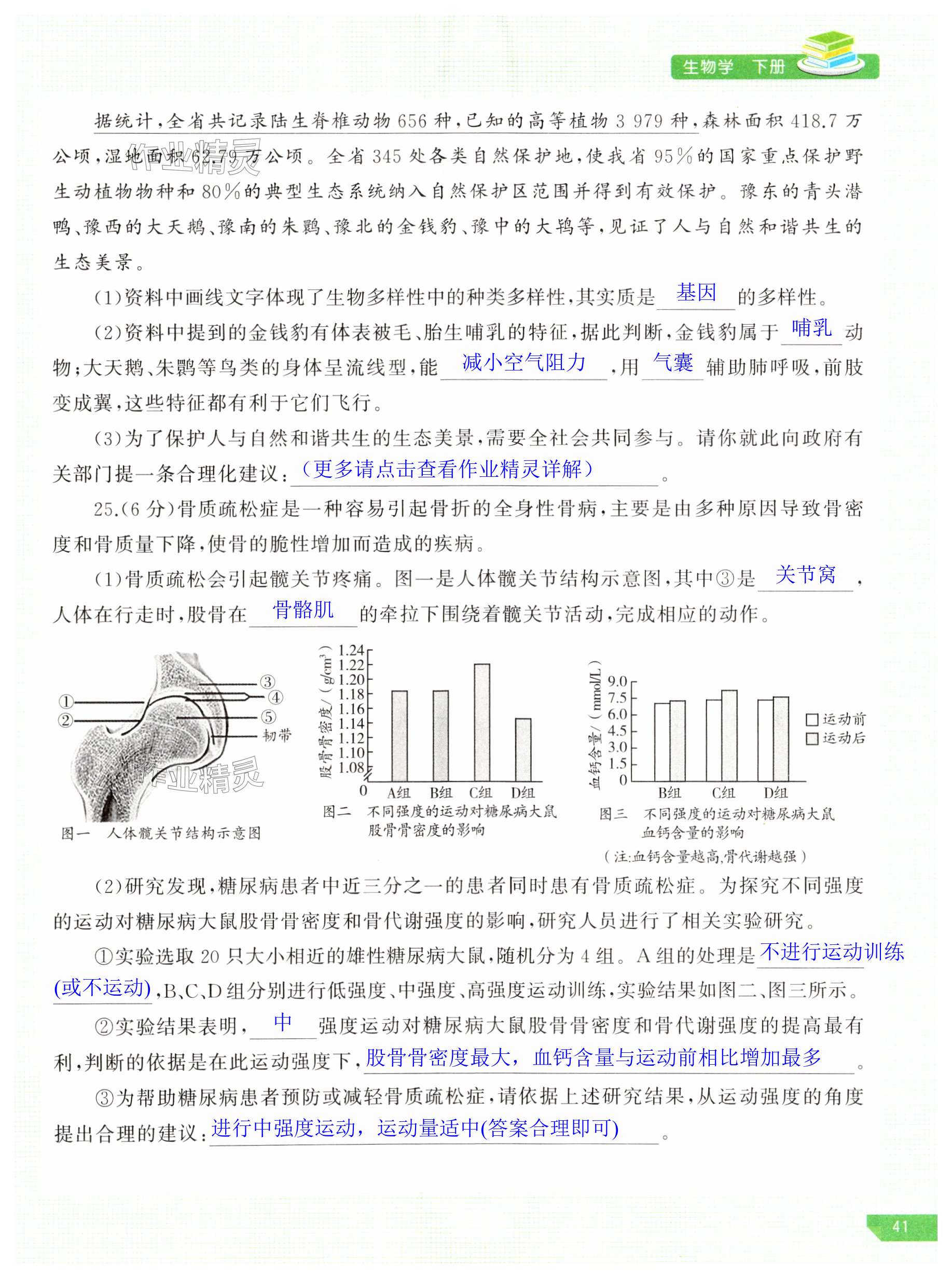 注:目前有些书本章节名称可能整理的还不是很完善,但都是按照顺序排列的,请同学们按照顺序仔细查找。练习册 2024年河南省初中学业水平考试解析与检测生物下册 答案主要是用来给同学们做完题方便对答案用的,请勿直接抄袭。