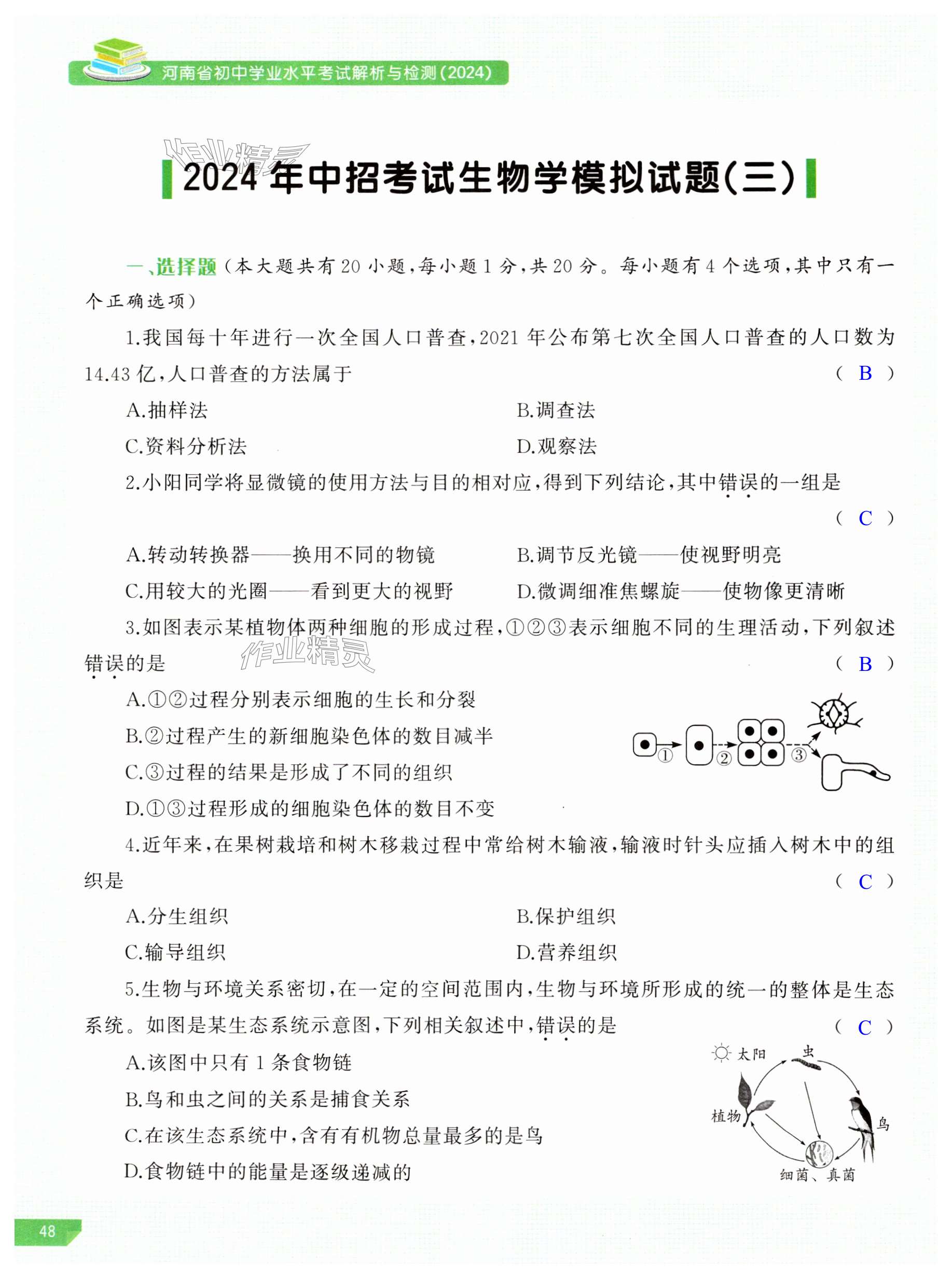 注:目前有些书本章节名称可能整理的还不是很完善,但都是按照顺序排列的,请同学们按照顺序仔细查找。练习册 2024年河南省初中学业水平考试解析与检测生物下册 答案主要是用来给同学们做完题方便对答案用的,请勿直接抄袭。