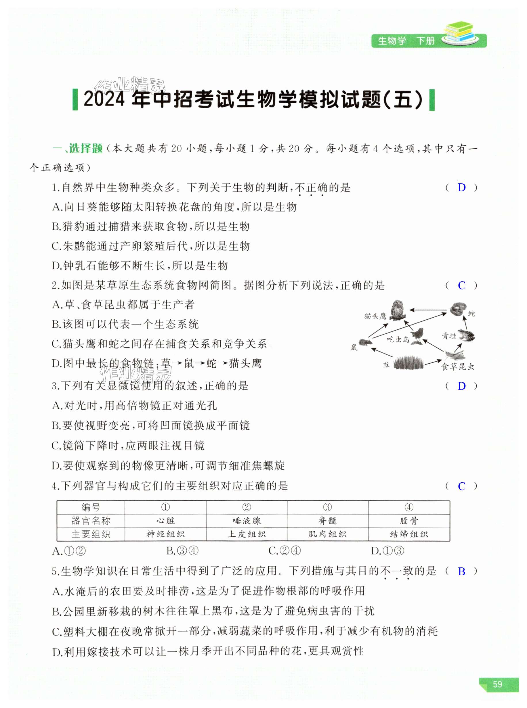 注:目前有些书本章节名称可能整理的还不是很完善,但都是按照顺序排列的,请同学们按照顺序仔细查找。练习册 2024年河南省初中学业水平考试解析与检测生物下册 答案主要是用来给同学们做完题方便对答案用的,请勿直接抄袭。