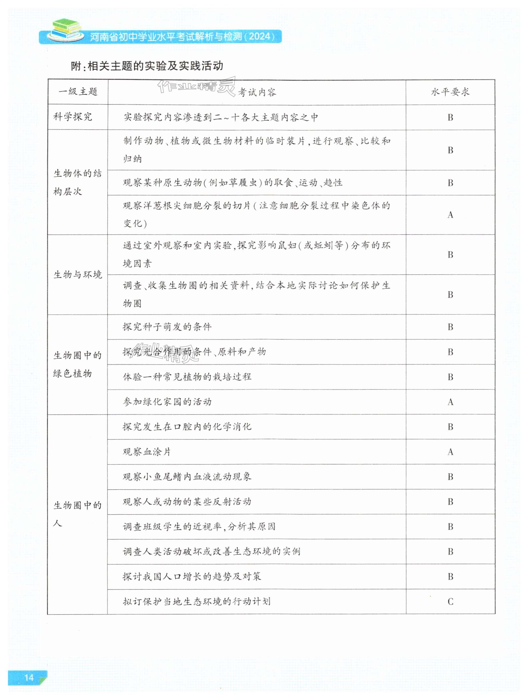 注:目前有些书本章节名称可能整理的还不是很完善,但都是按照顺序排列的,请同学们按照顺序仔细查找。练习册 2024年河南省初中学业水平考试解析与检测生物上册 答案主要是用来给同学们做完题方便对答案用的,请勿直接抄袭。