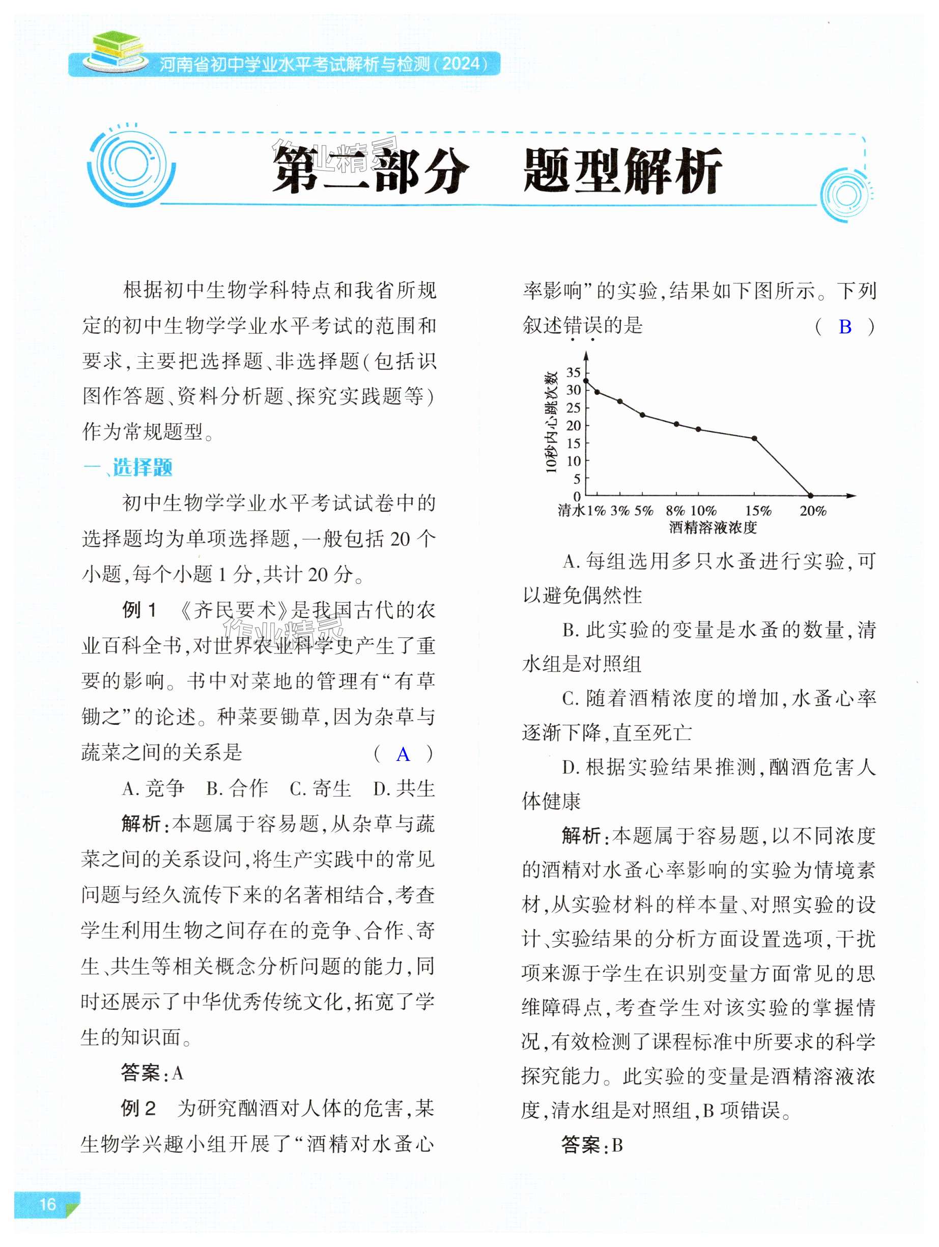 注:目前有些书本章节名称可能整理的还不是很完善,但都是按照顺序排列的,请同学们按照顺序仔细查找。练习册 2024年河南省初中学业水平考试解析与检测生物上册 答案主要是用来给同学们做完题方便对答案用的,请勿直接抄袭。
