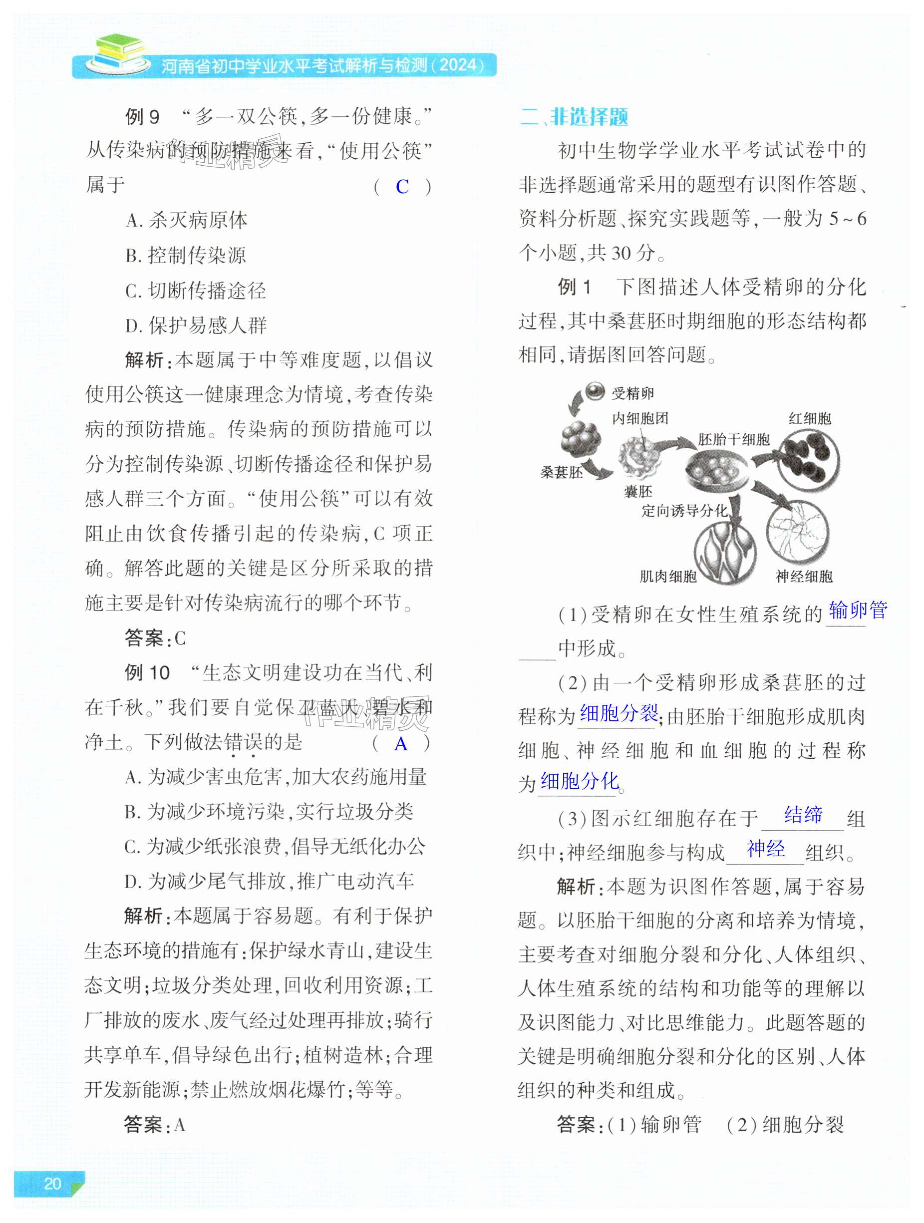 注:目前有些书本章节名称可能整理的还不是很完善,但都是按照顺序排列的,请同学们按照顺序仔细查找。练习册 2024年河南省初中学业水平考试解析与检测生物上册 答案主要是用来给同学们做完题方便对答案用的,请勿直接抄袭。