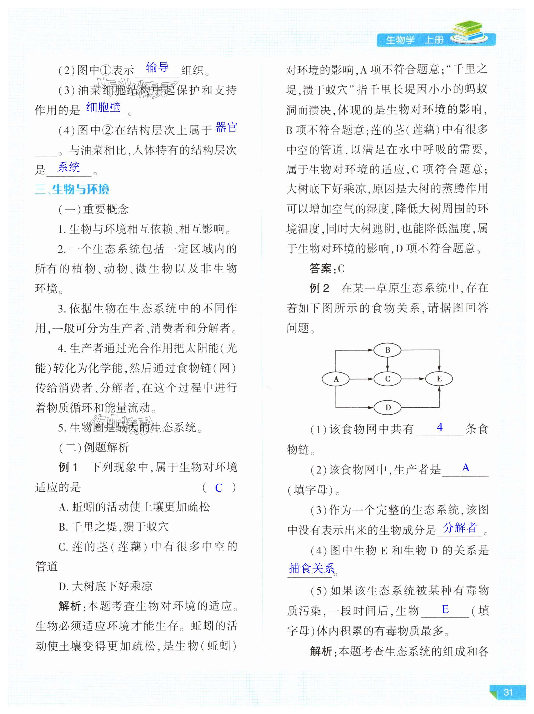 注:目前有些书本章节名称可能整理的还不是很完善,但都是按照顺序排列的,请同学们按照顺序仔细查找。练习册 2024年河南省初中学业水平考试解析与检测生物上册 答案主要是用来给同学们做完题方便对答案用的,请勿直接抄袭。