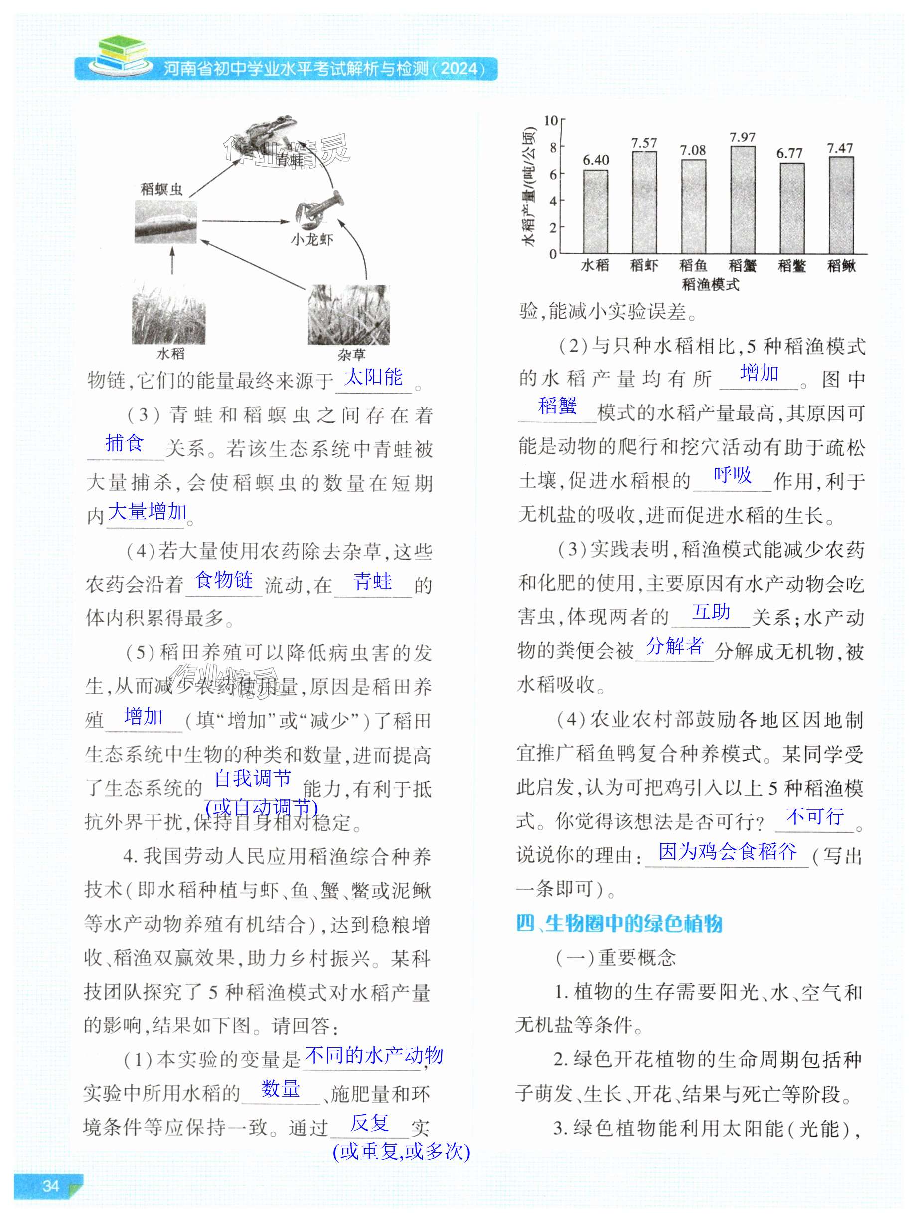 注:目前有些书本章节名称可能整理的还不是很完善,但都是按照顺序排列的,请同学们按照顺序仔细查找。练习册 2024年河南省初中学业水平考试解析与检测生物上册 答案主要是用来给同学们做完题方便对答案用的,请勿直接抄袭。