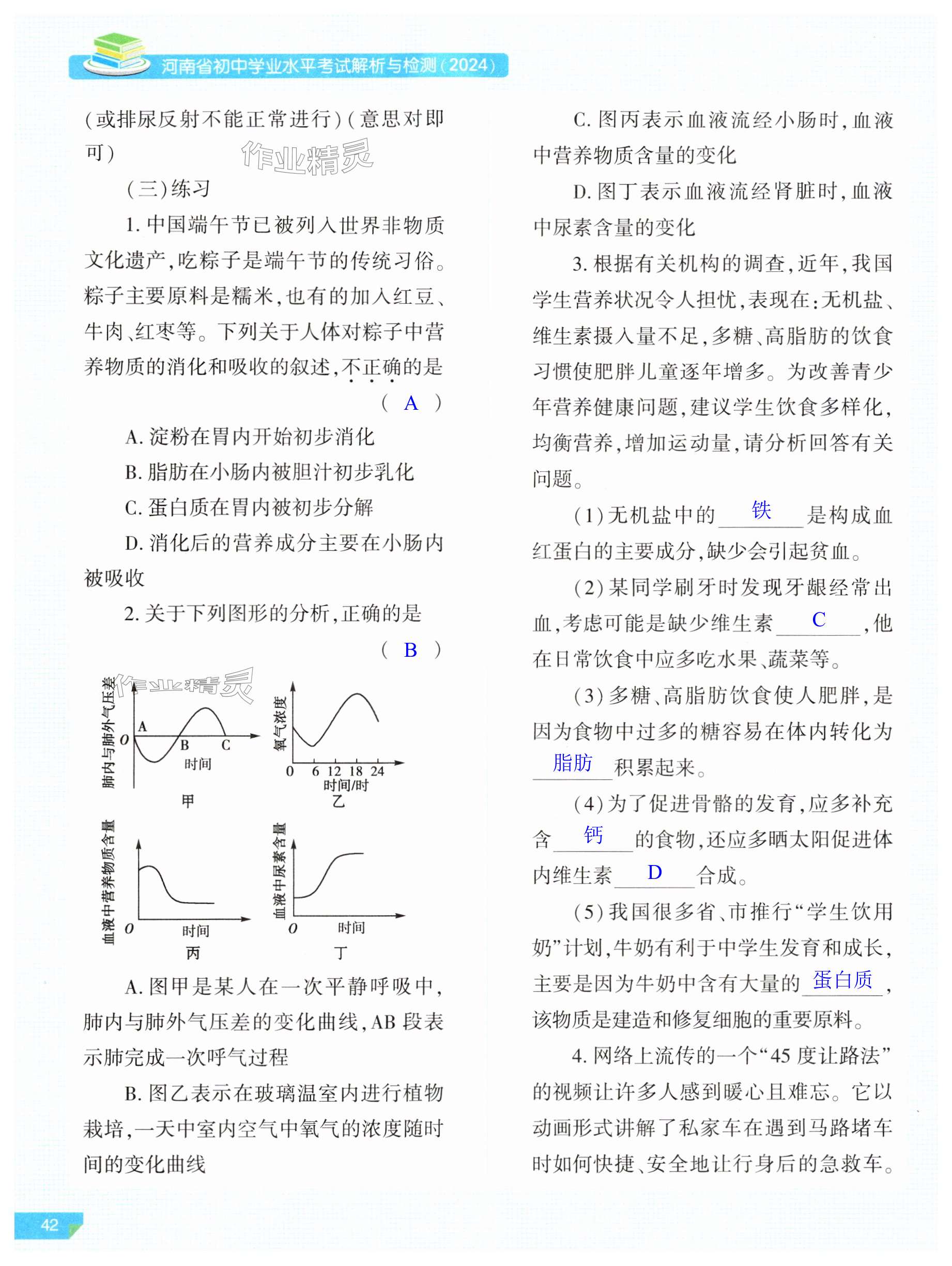 注:目前有些书本章节名称可能整理的还不是很完善,但都是按照顺序排列的,请同学们按照顺序仔细查找。练习册 2024年河南省初中学业水平考试解析与检测生物上册 答案主要是用来给同学们做完题方便对答案用的,请勿直接抄袭。