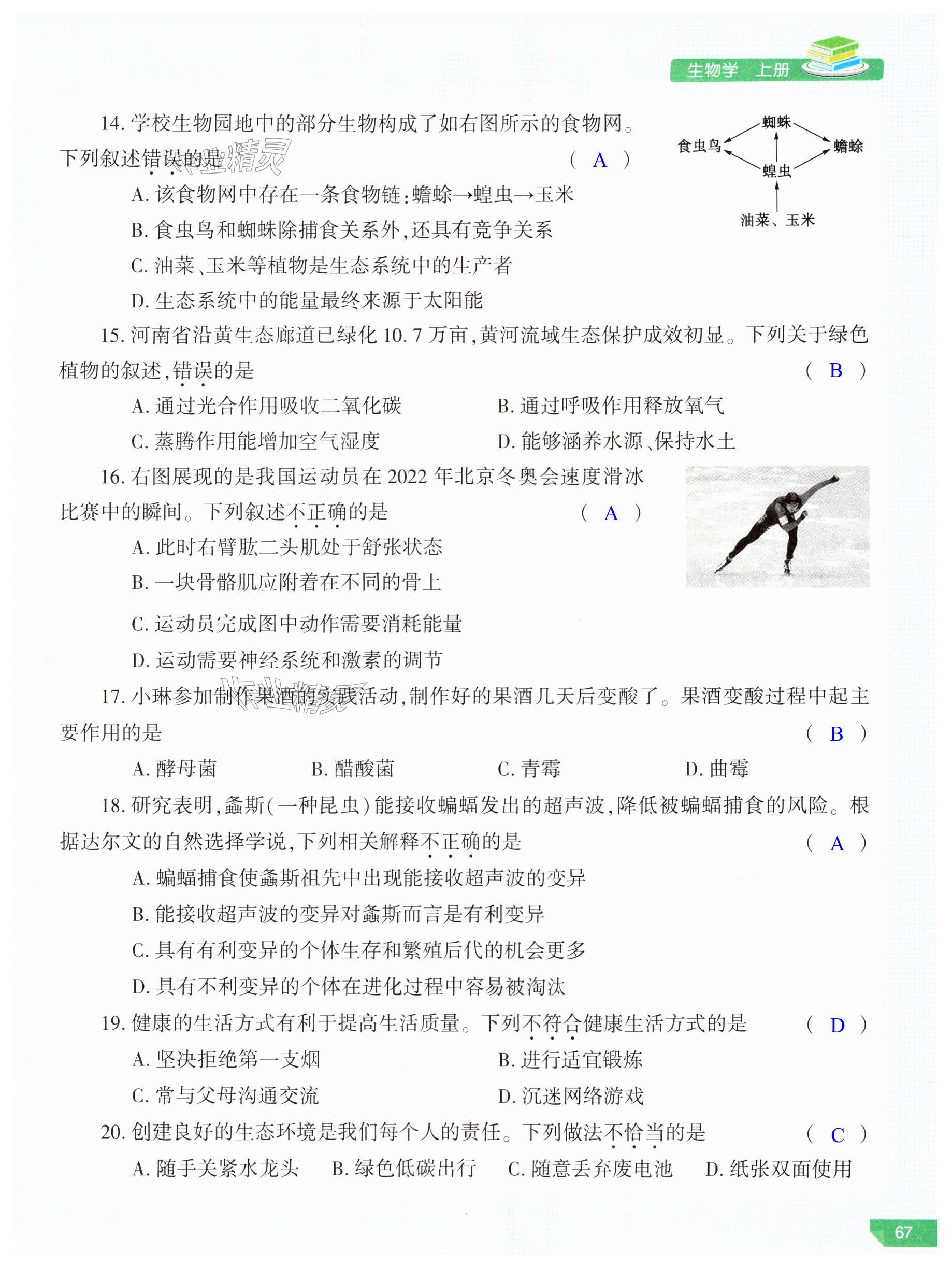 注:目前有些书本章节名称可能整理的还不是很完善,但都是按照顺序排列的,请同学们按照顺序仔细查找。练习册 2024年河南省初中学业水平考试解析与检测生物上册 答案主要是用来给同学们做完题方便对答案用的,请勿直接抄袭。