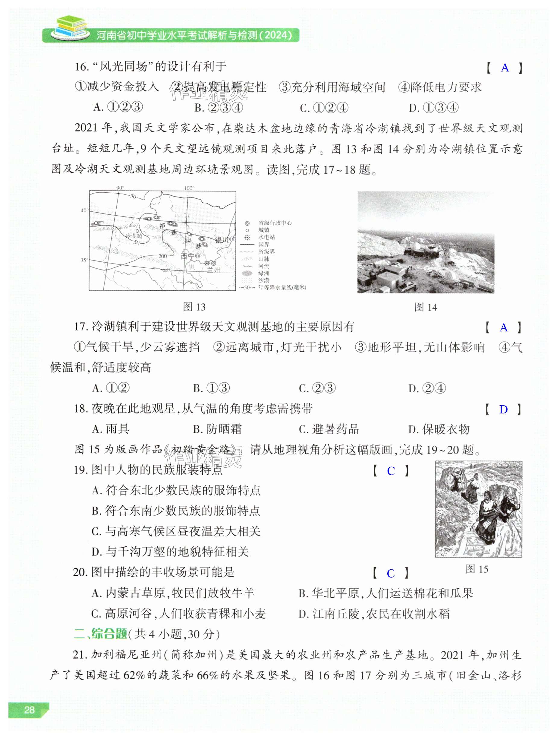 注:目前有些书本章节名称可能整理的还不是很完善,但都是按照顺序排列的,请同学们按照顺序仔细查找。练习册 2024年河南省初中学业水平考试解析与检测地理上册 答案主要是用来给同学们做完题方便对答案用的,请勿直接抄袭。