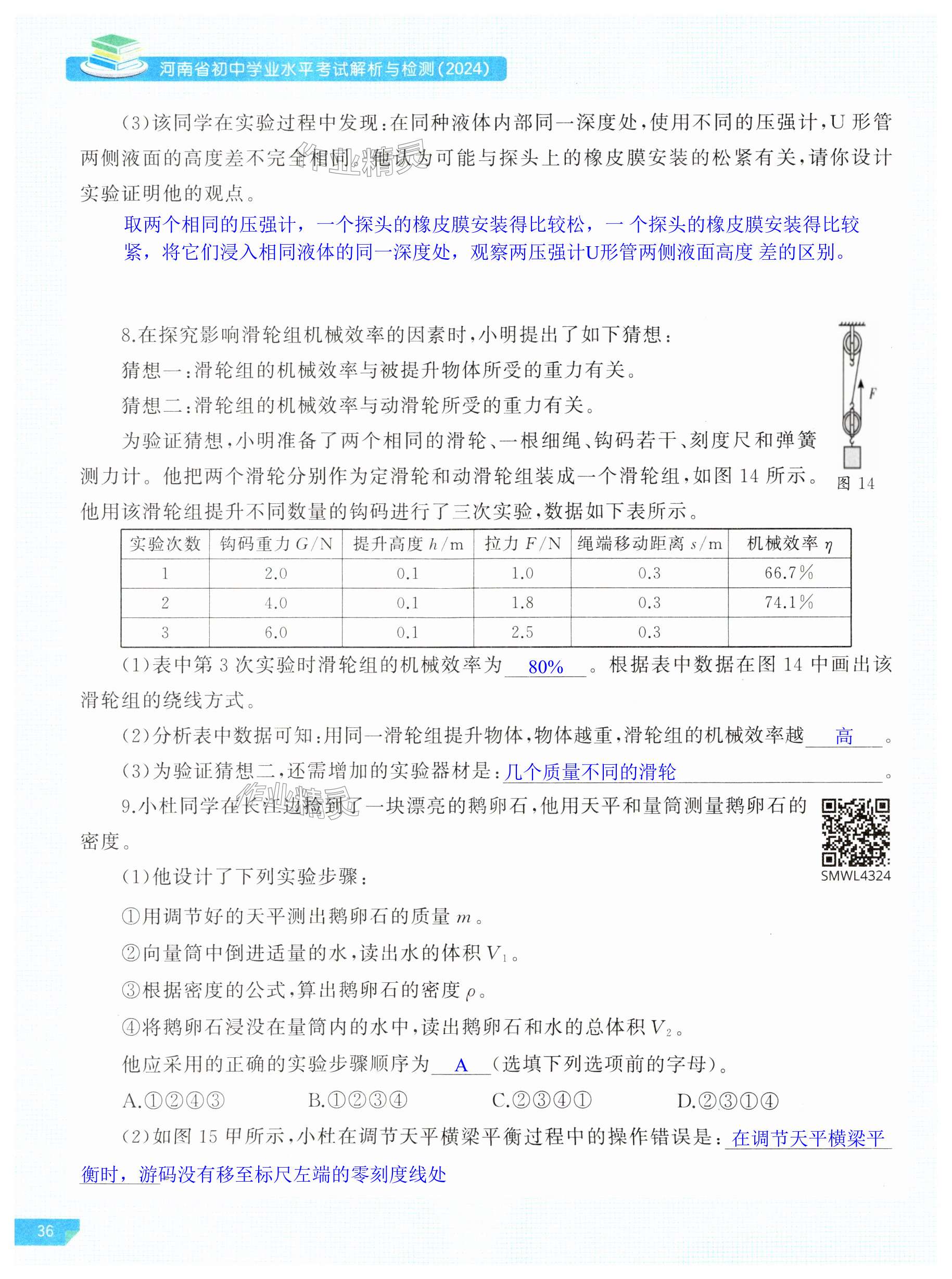 注:目前有些书本章节名称可能整理的还不是很完善,但都是按照顺序排列的,请同学们按照顺序仔细查找。练习册 2024年河南省初中学业水平考试解析与检测物理下册 答案主要是用来给同学们做完题方便对答案用的,请勿直接抄袭。