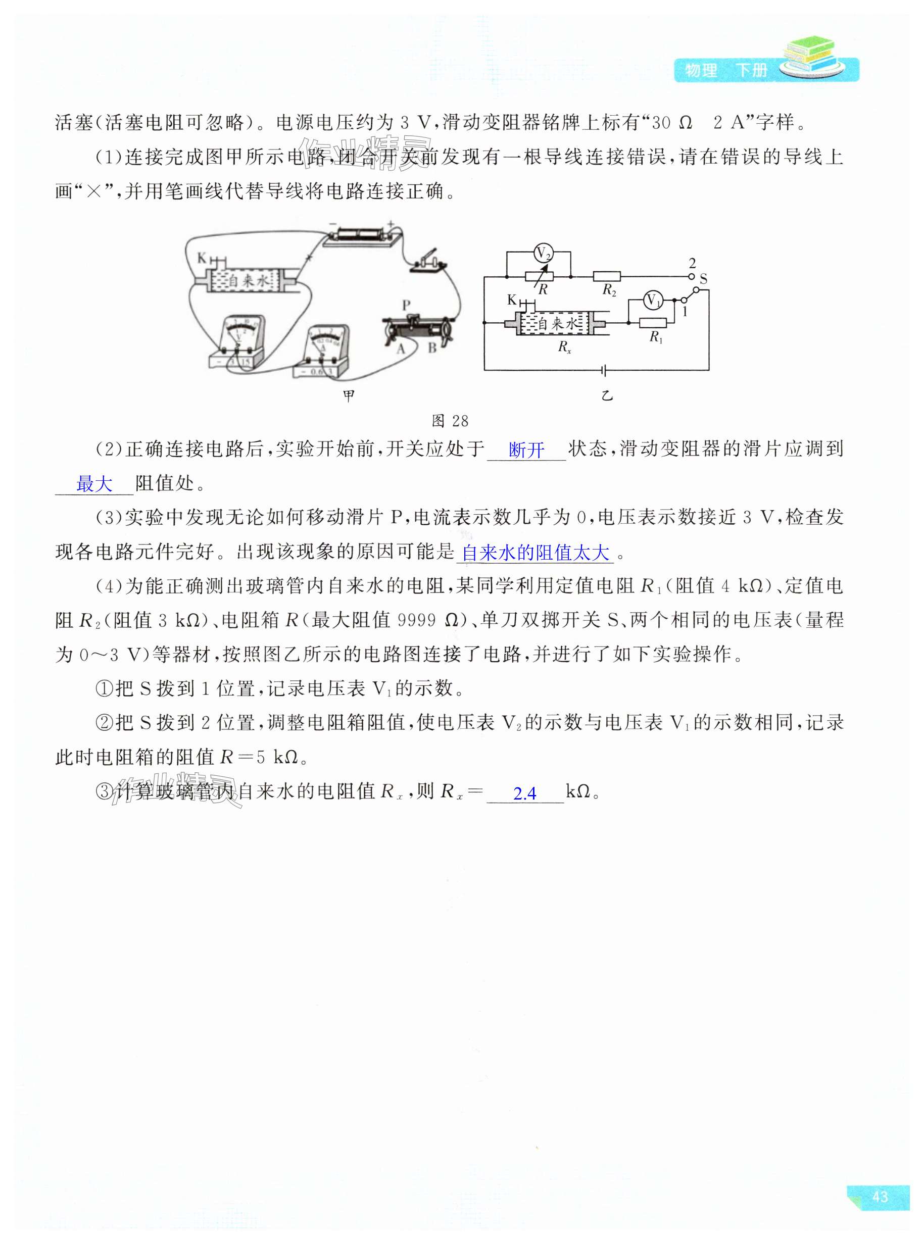 注:目前有些书本章节名称可能整理的还不是很完善,但都是按照顺序排列的,请同学们按照顺序仔细查找。练习册 2024年河南省初中学业水平考试解析与检测物理下册 答案主要是用来给同学们做完题方便对答案用的,请勿直接抄袭。