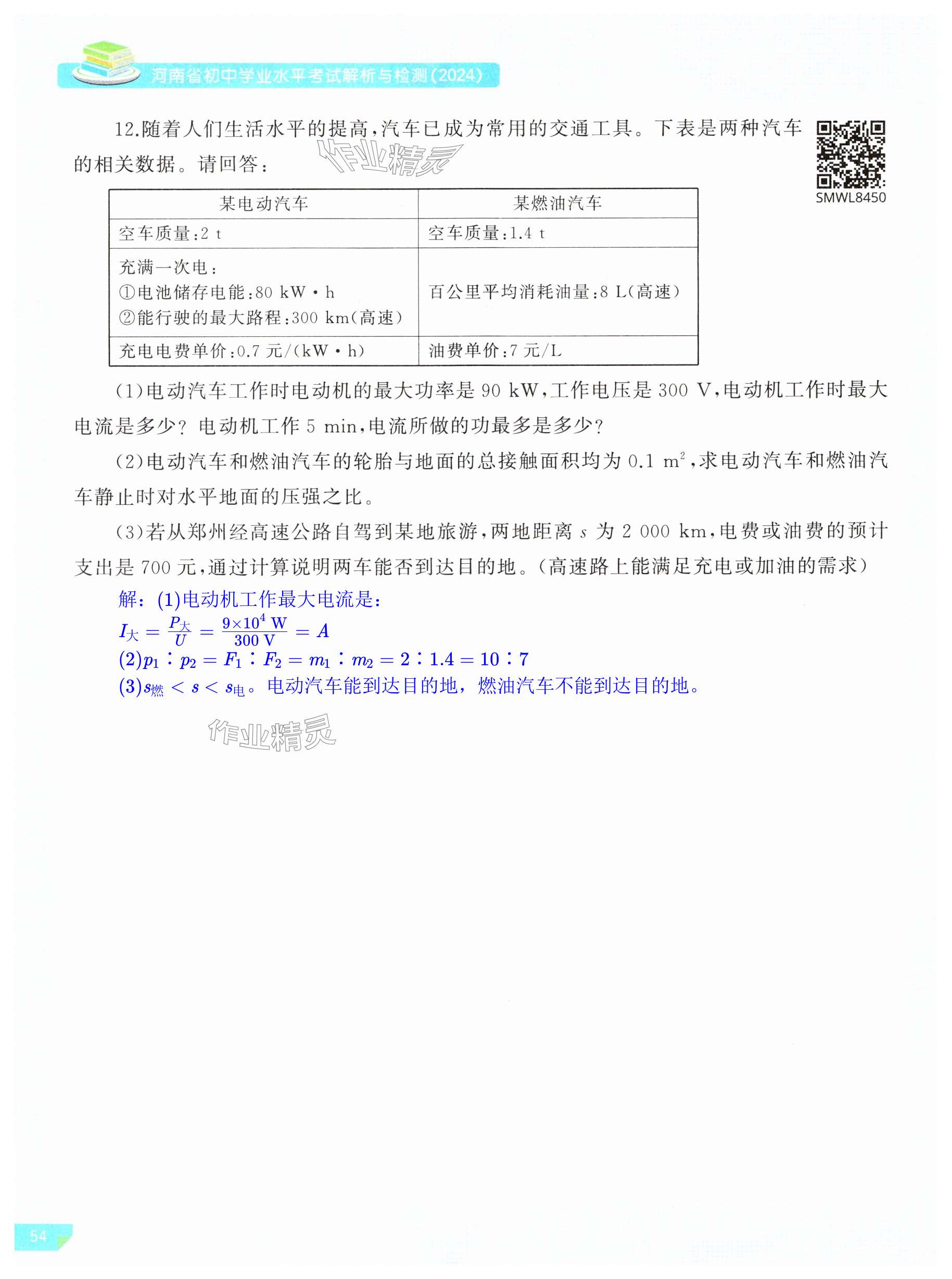 2024年河南省初中学业水平考试解析与检测物理下册