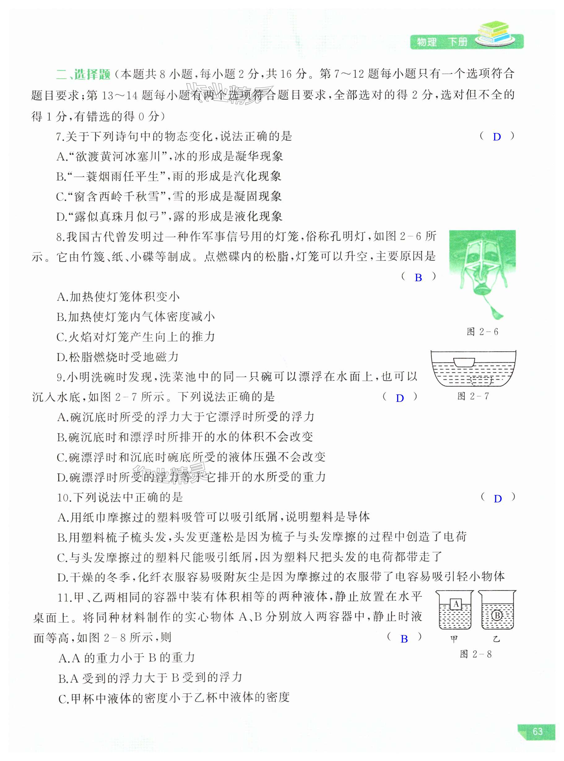 注:目前有些书本章节名称可能整理的还不是很完善,但都是按照顺序排列的,请同学们按照顺序仔细查找。练习册 2024年河南省初中学业水平考试解析与检测物理下册 答案主要是用来给同学们做完题方便对答案用的,请勿直接抄袭。