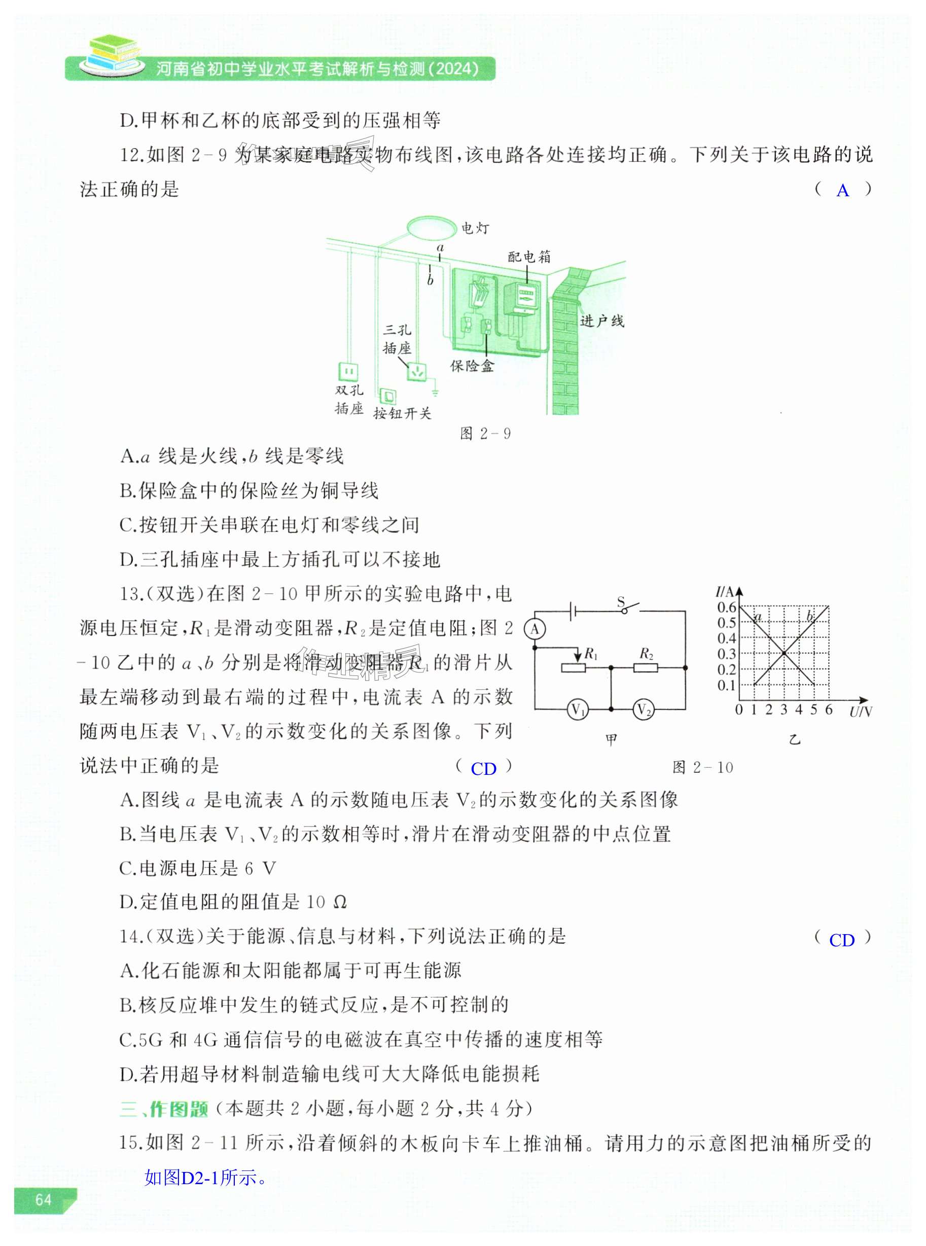 注:目前有些书本章节名称可能整理的还不是很完善,但都是按照顺序排列的,请同学们按照顺序仔细查找。练习册 2024年河南省初中学业水平考试解析与检测物理下册 答案主要是用来给同学们做完题方便对答案用的,请勿直接抄袭。