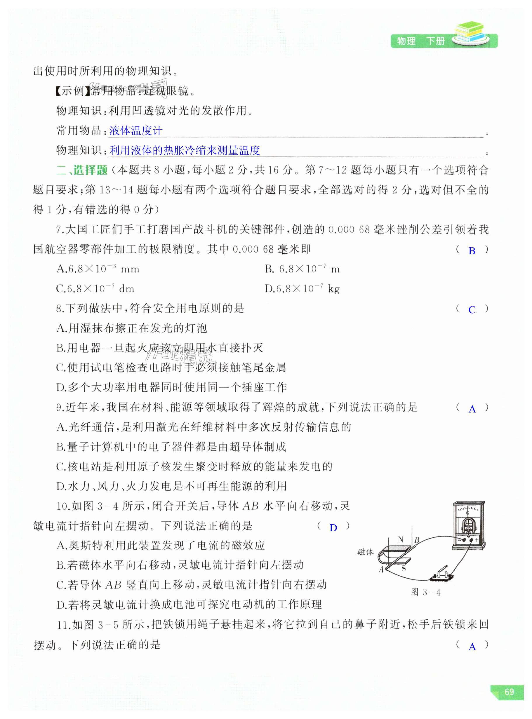 注:目前有些书本章节名称可能整理的还不是很完善,但都是按照顺序排列的,请同学们按照顺序仔细查找。练习册 2024年河南省初中学业水平考试解析与检测物理下册 答案主要是用来给同学们做完题方便对答案用的,请勿直接抄袭。