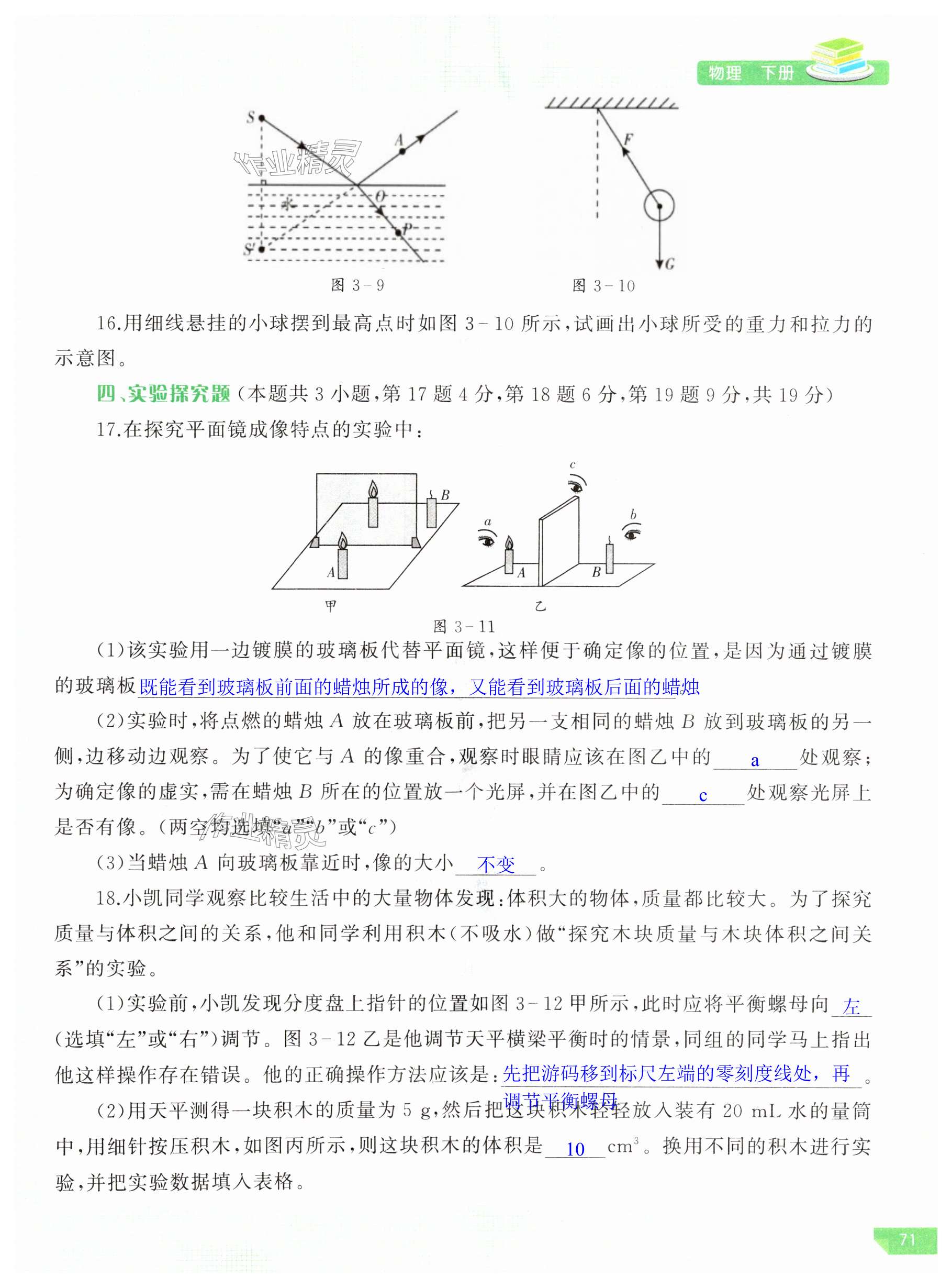 注:目前有些书本章节名称可能整理的还不是很完善,但都是按照顺序排列的,请同学们按照顺序仔细查找。练习册 2024年河南省初中学业水平考试解析与检测物理下册 答案主要是用来给同学们做完题方便对答案用的,请勿直接抄袭。