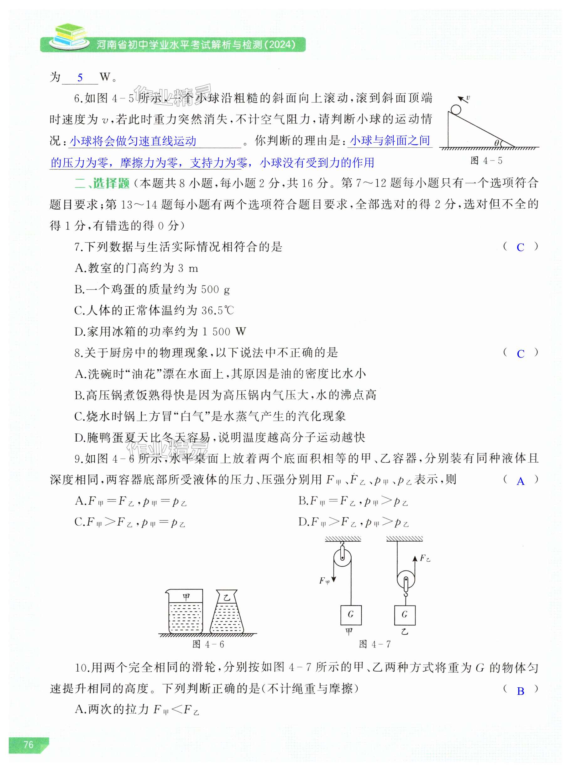 注:目前有些书本章节名称可能整理的还不是很完善,但都是按照顺序排列的,请同学们按照顺序仔细查找。练习册 2024年河南省初中学业水平考试解析与检测物理下册 答案主要是用来给同学们做完题方便对答案用的,请勿直接抄袭。