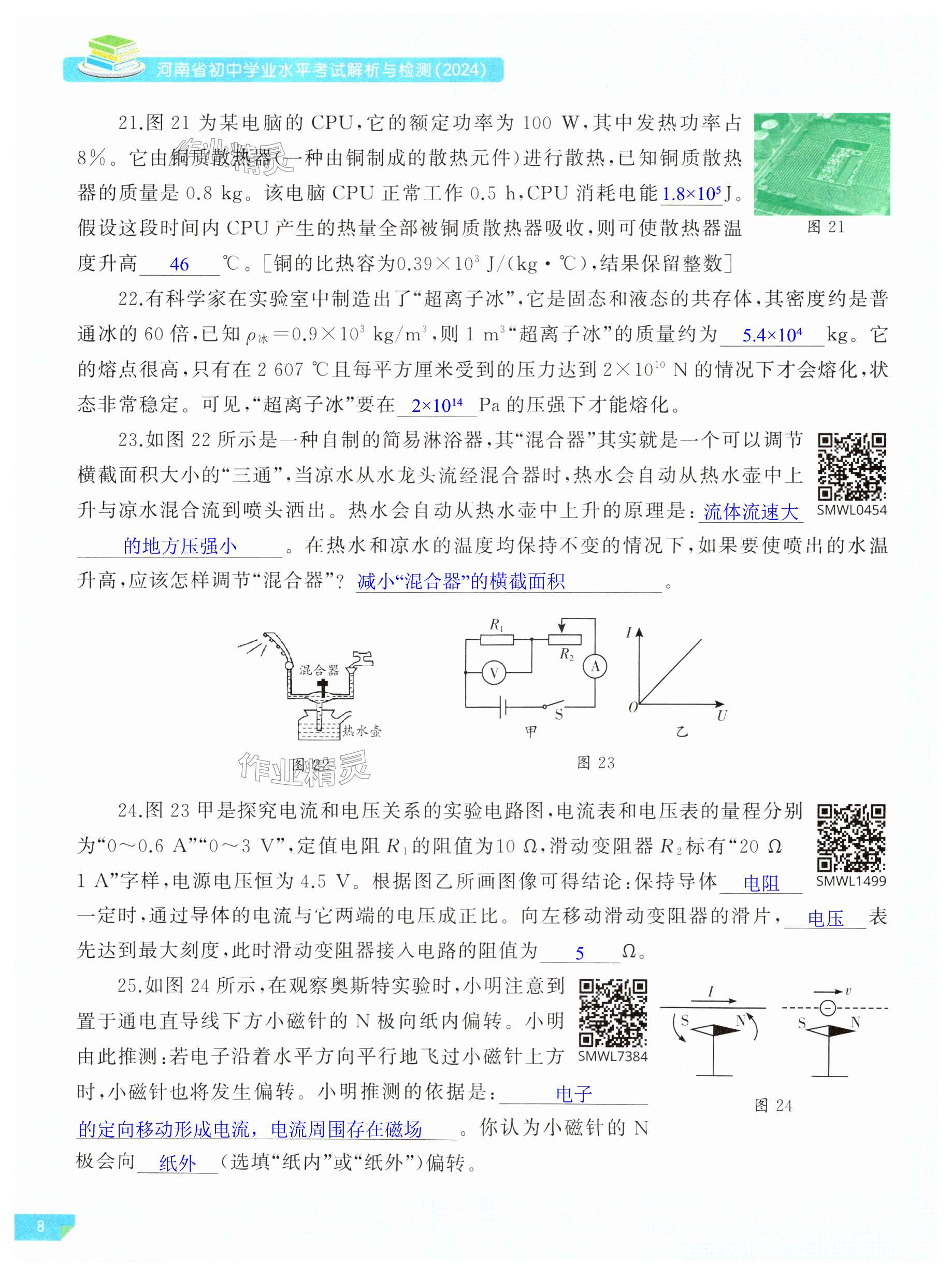 注:目前有些书本章节名称可能整理的还不是很完善,但都是按照顺序排列的,请同学们按照顺序仔细查找。练习册 2024年河南省初中学业水平考试解析与检测物理下册 答案主要是用来给同学们做完题方便对答案用的,请勿直接抄袭。