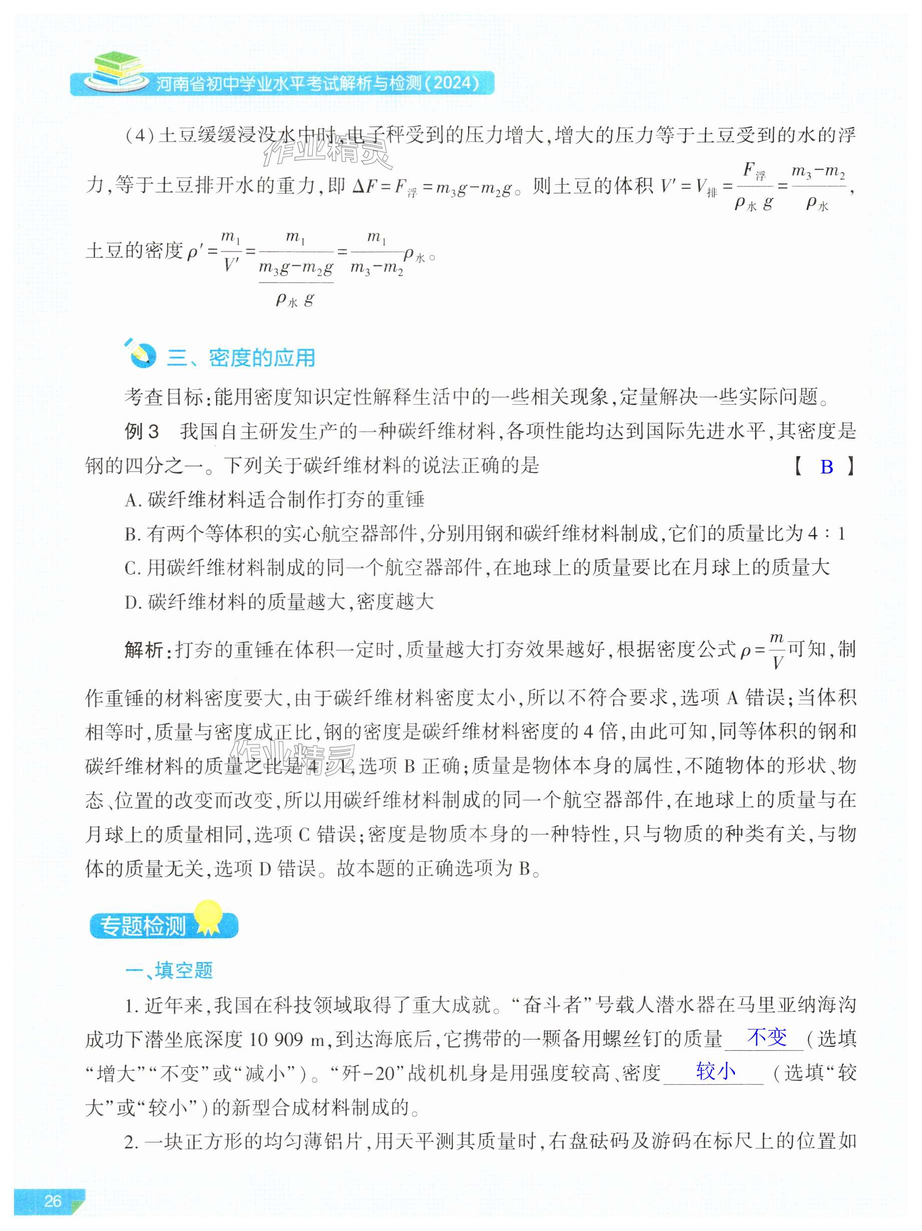 注:目前有些书本章节名称可能整理的还不是很完善,但都是按照顺序排列的,请同学们按照顺序仔细查找。练习册 2024年河南省初中学业水平考试解析与检测物理上册 答案主要是用来给同学们做完题方便对答案用的,请勿直接抄袭。