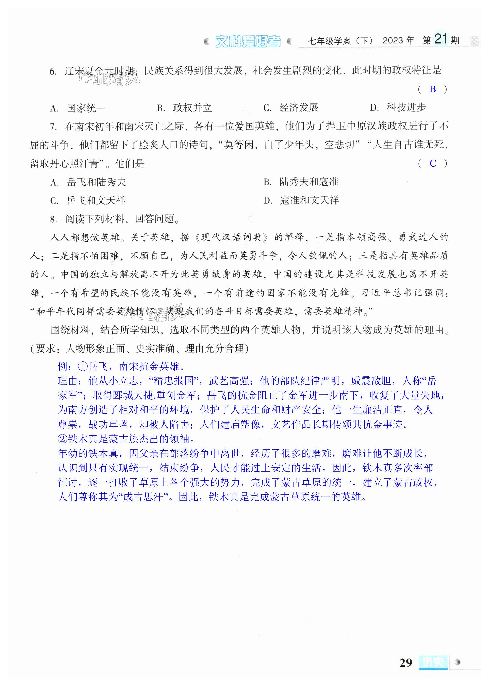 注:目前有些书本章节名称可能整理的还不是很完善,但都是按照顺序排列的,请同学们按照顺序仔细查找。练习册 2024年文科爱好者七年级历史下册人教版 答案主要是用来给同学们做完题方便对答案用的,请勿直接抄袭。