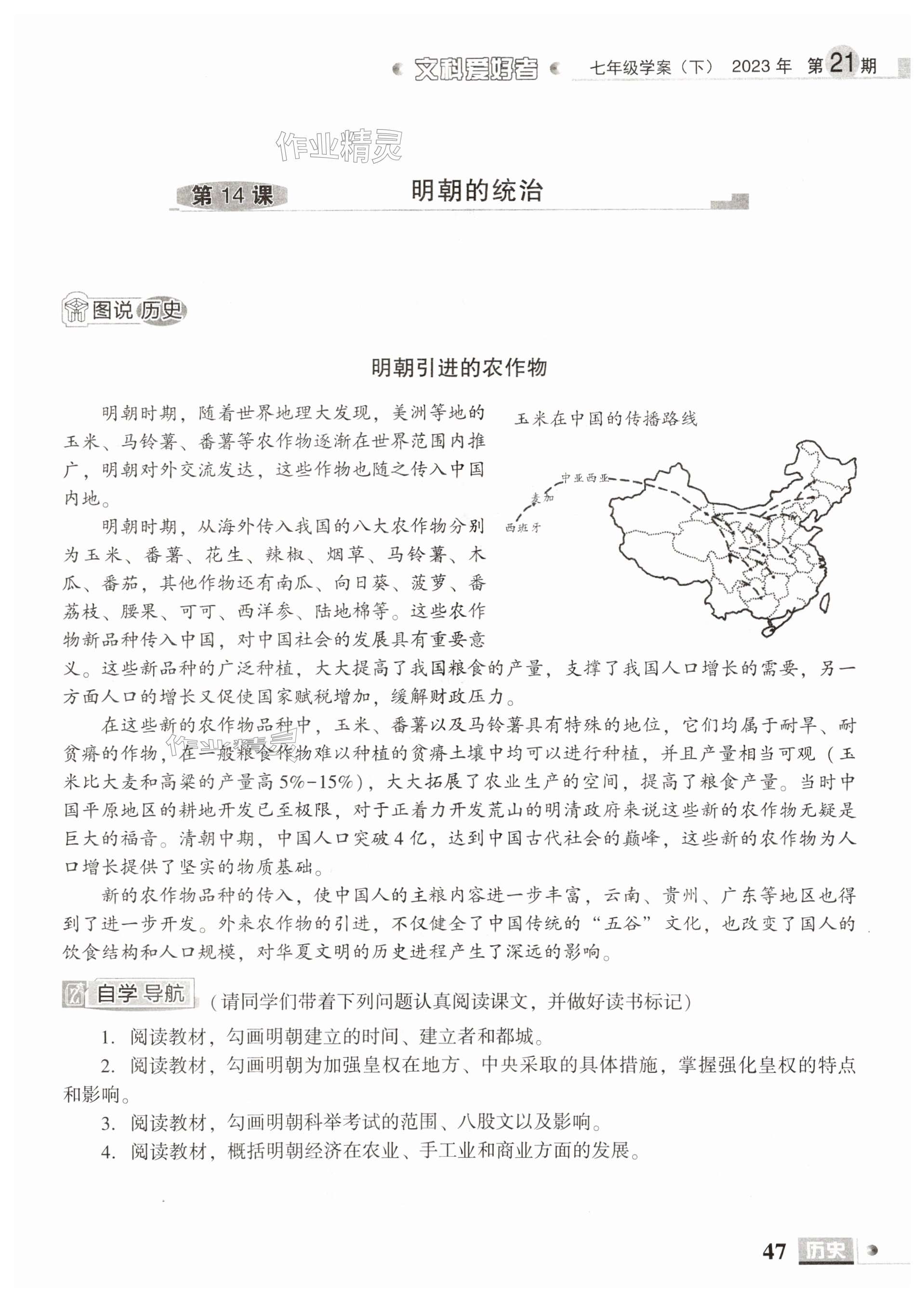 注:目前有些书本章节名称可能整理的还不是很完善,但都是按照顺序排列的,请同学们按照顺序仔细查找。练习册 2024年文科爱好者七年级历史下册人教版 答案主要是用来给同学们做完题方便对答案用的,请勿直接抄袭。