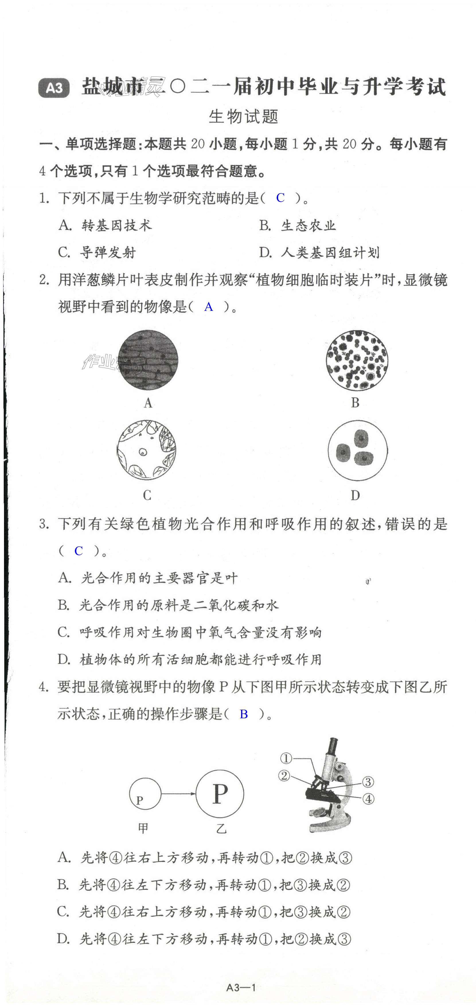 注:目前有些书本章节名称可能整理的还不是很完善,但都是按照顺序排列的,请同学们按照顺序仔细查找。练习册 2024年春雨教育考必胜中考试卷精选生物盐城专版 答案主要是用来给同学们做完题方便对答案用的,请勿直接抄袭。